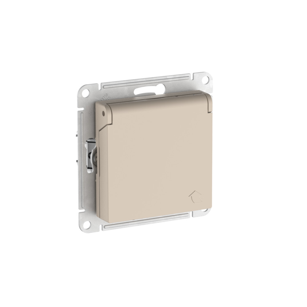 —ATLASDESIGN РОЗЕТКА с заземлением со шторками с крышкой,16А,IP20, мех.,быстрозажим. клем., ПЕСОЧНЫЙ