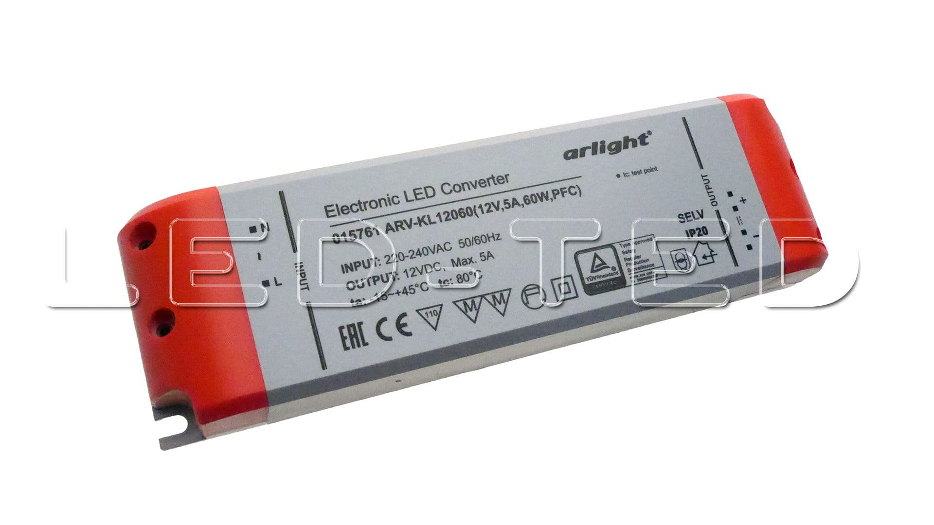 —Блок питания ARV-KL12060 12V 5A 60W PFC открытый импульсный 015761 Arlight