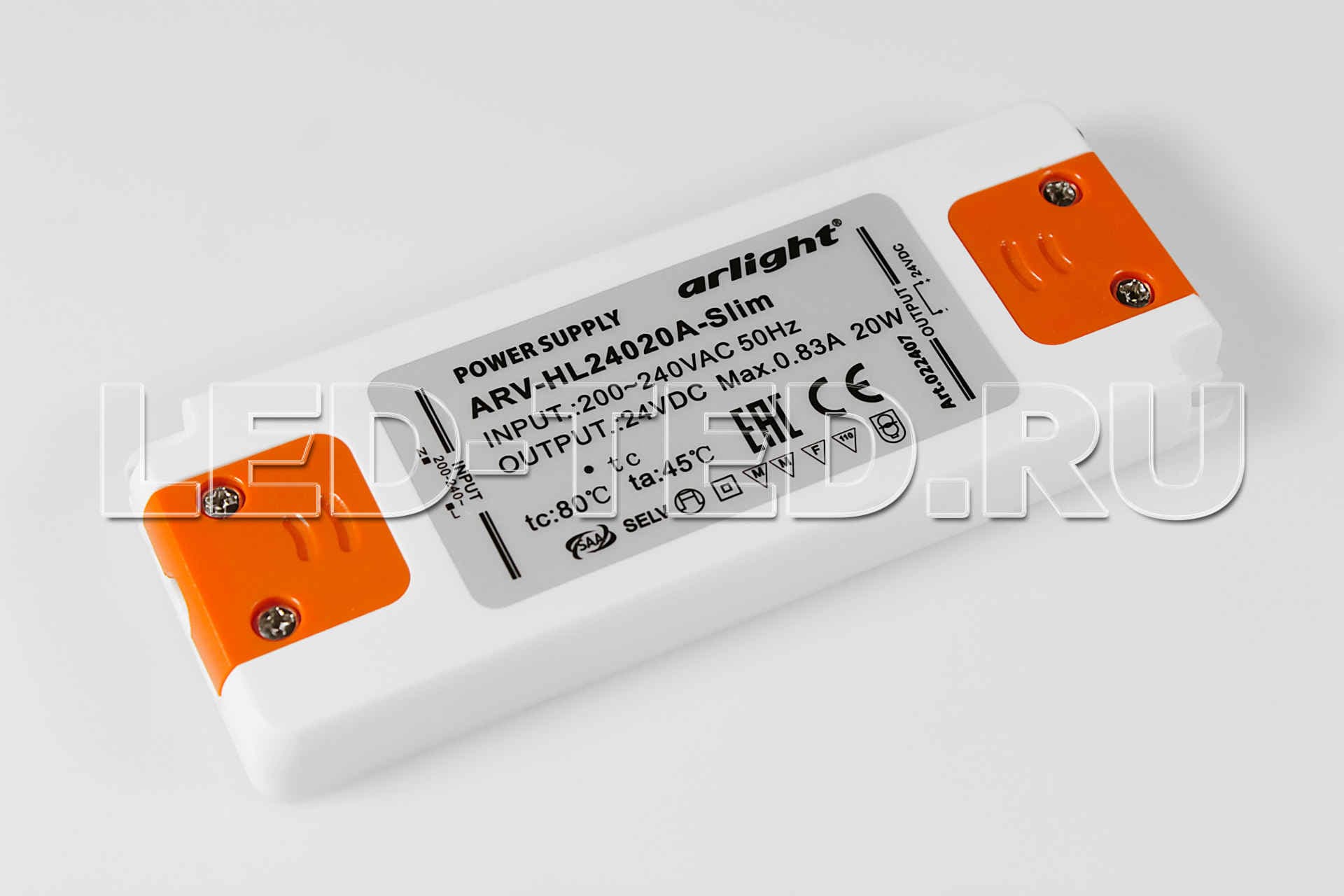 Блок питания ARV-HL24020A-Slim 24V 0.83A 20W открытый импульсный SLIM 022407 Arlight