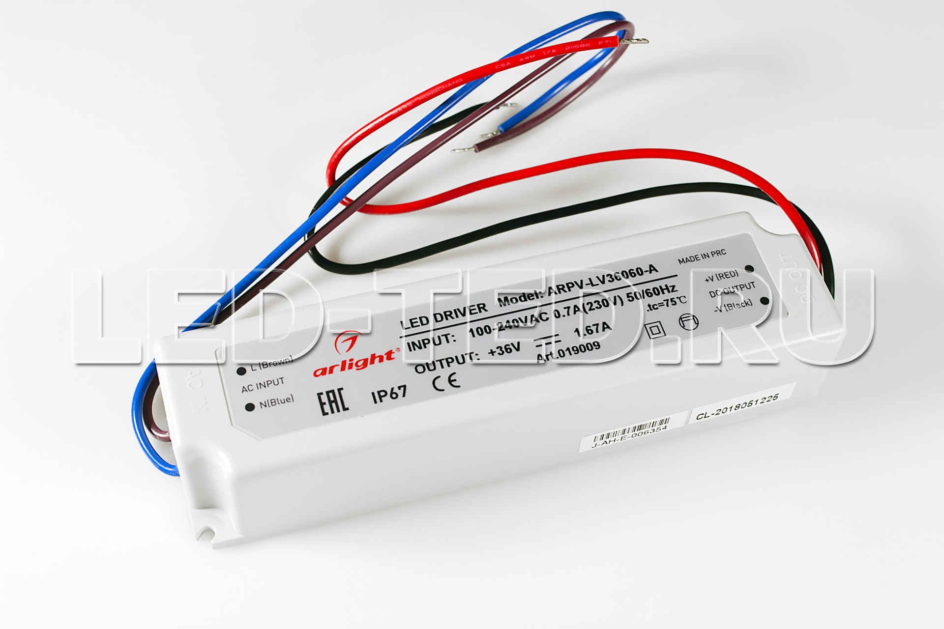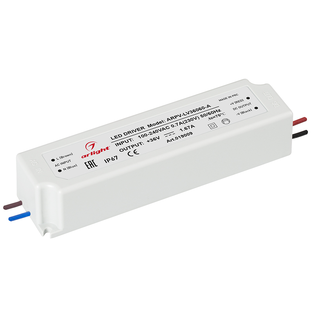—Герметичный блок питания ARPV-LM36060 36V 1.67A 60W узкий импульсный 019009 Arlight