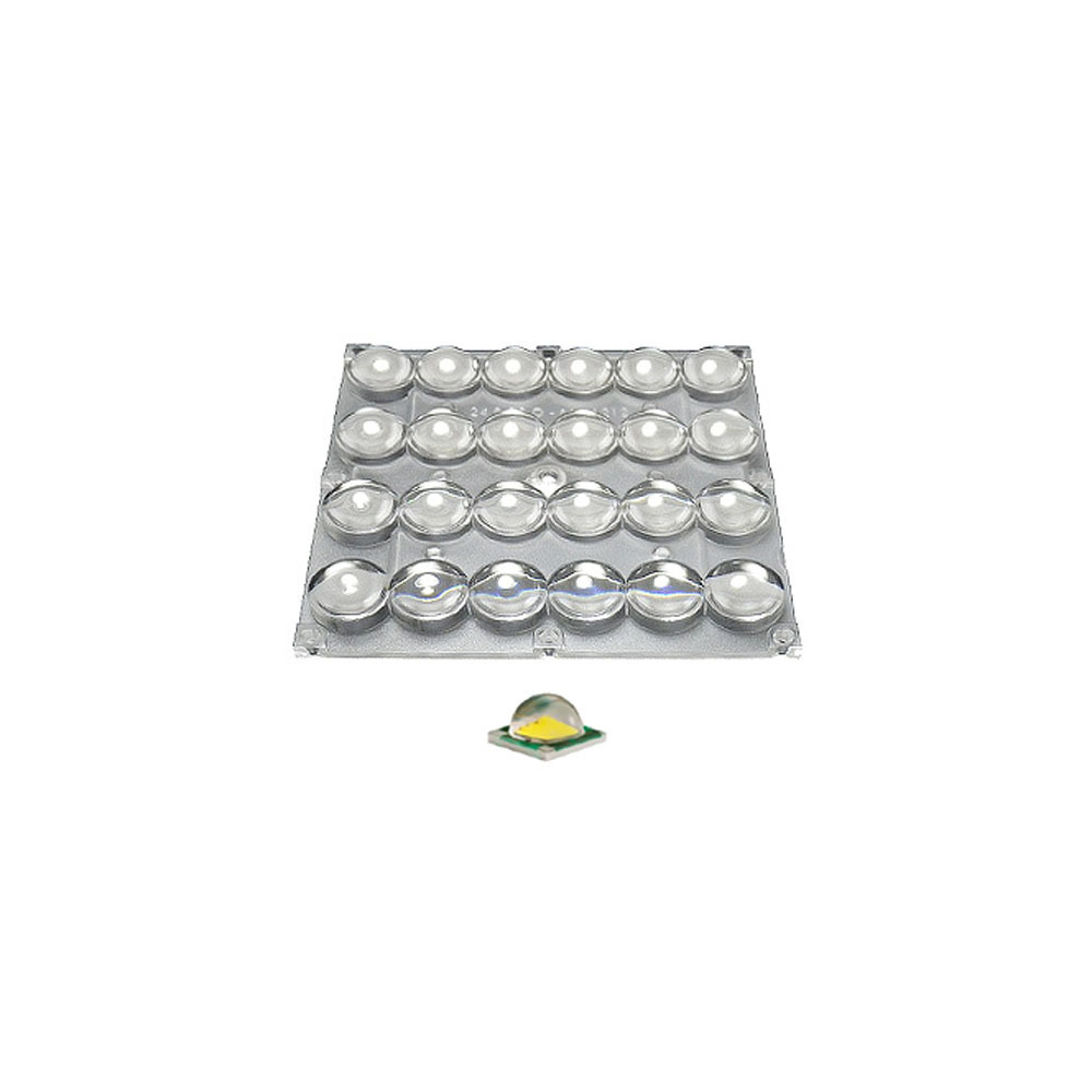 Блок линз 4х6 для мощных светодиодов 'Emitter', CREE XP, smd до 5х5мм (24шт). Размер: 120x120 мм, H=12.5 мм. Угол: 70°. Используется с платой STB 24, 100, 120, 121. Крепление под винт.