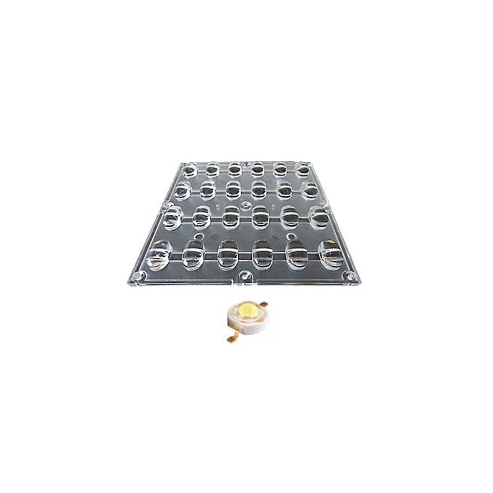 Блок линз 4х6 для светодиодов Emitter (24шт). Размер: 120x120 мм, H=10.2 мм. Угол: 120 x 40°. Используется с платой STB 012524, 012537, 120. Крепление под винт.
