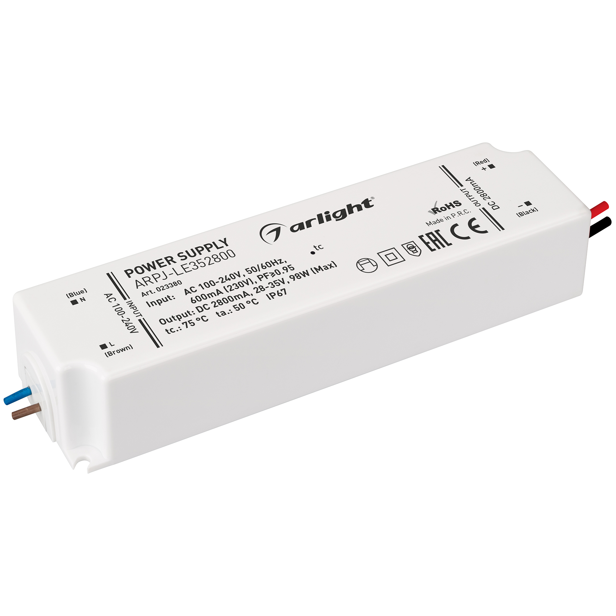 —Светодиодный драйвер ARPJ-LE352800 98W 2800mA PFC герметичный узкий для светильников и светодиодов 023380 Arlight