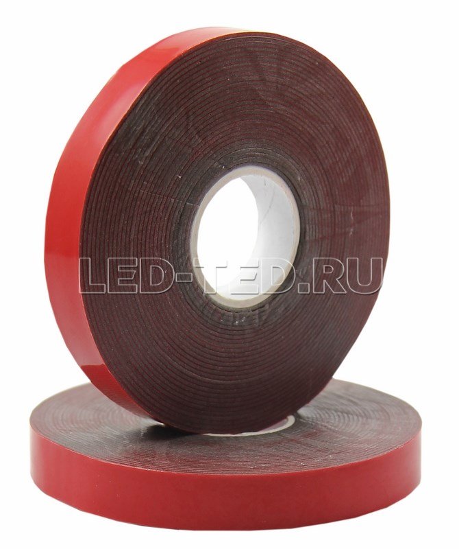 Двухсторонний скотч красного цвета на серой основе 12мм 5метров REXANT