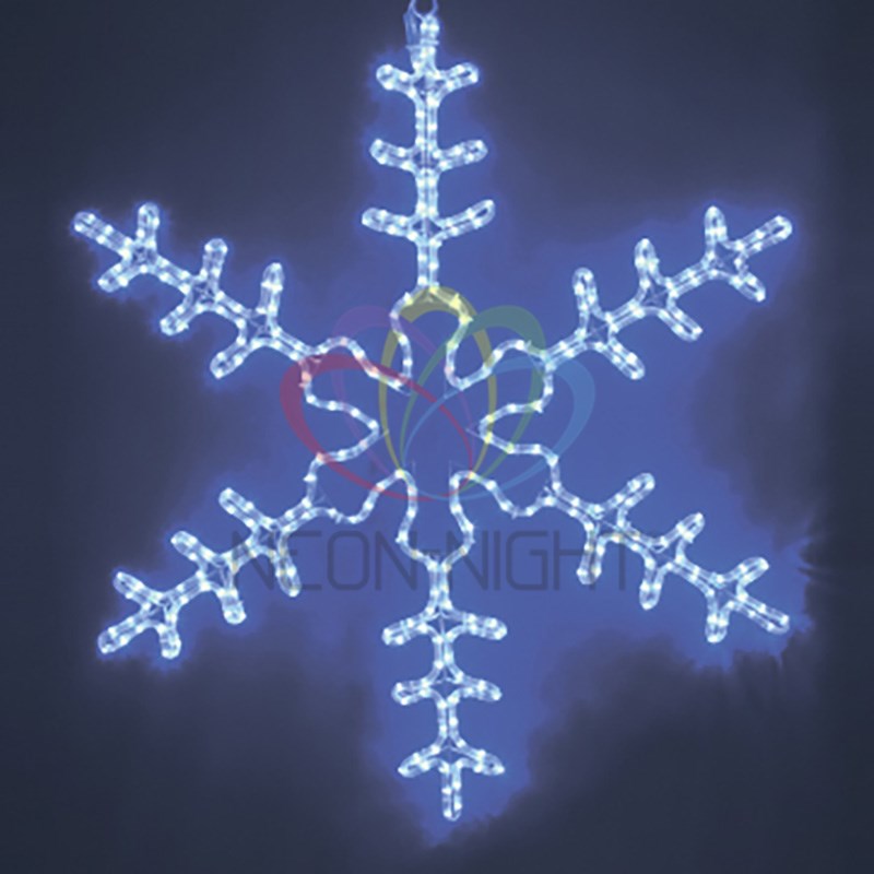 Снежинка имеет размер 95*95 см и Синее свечение светодиодов.