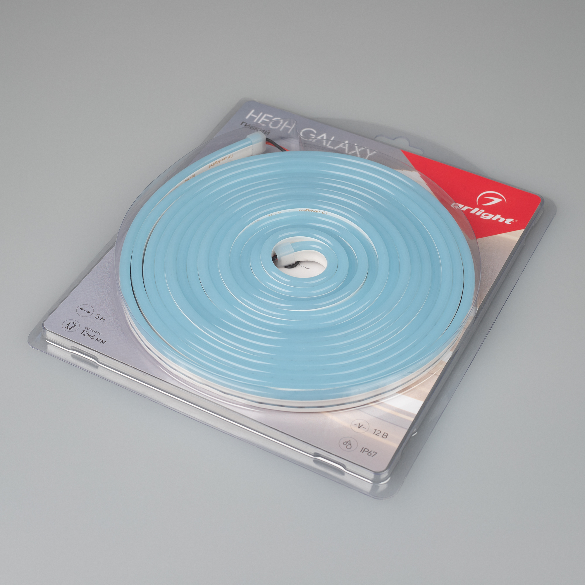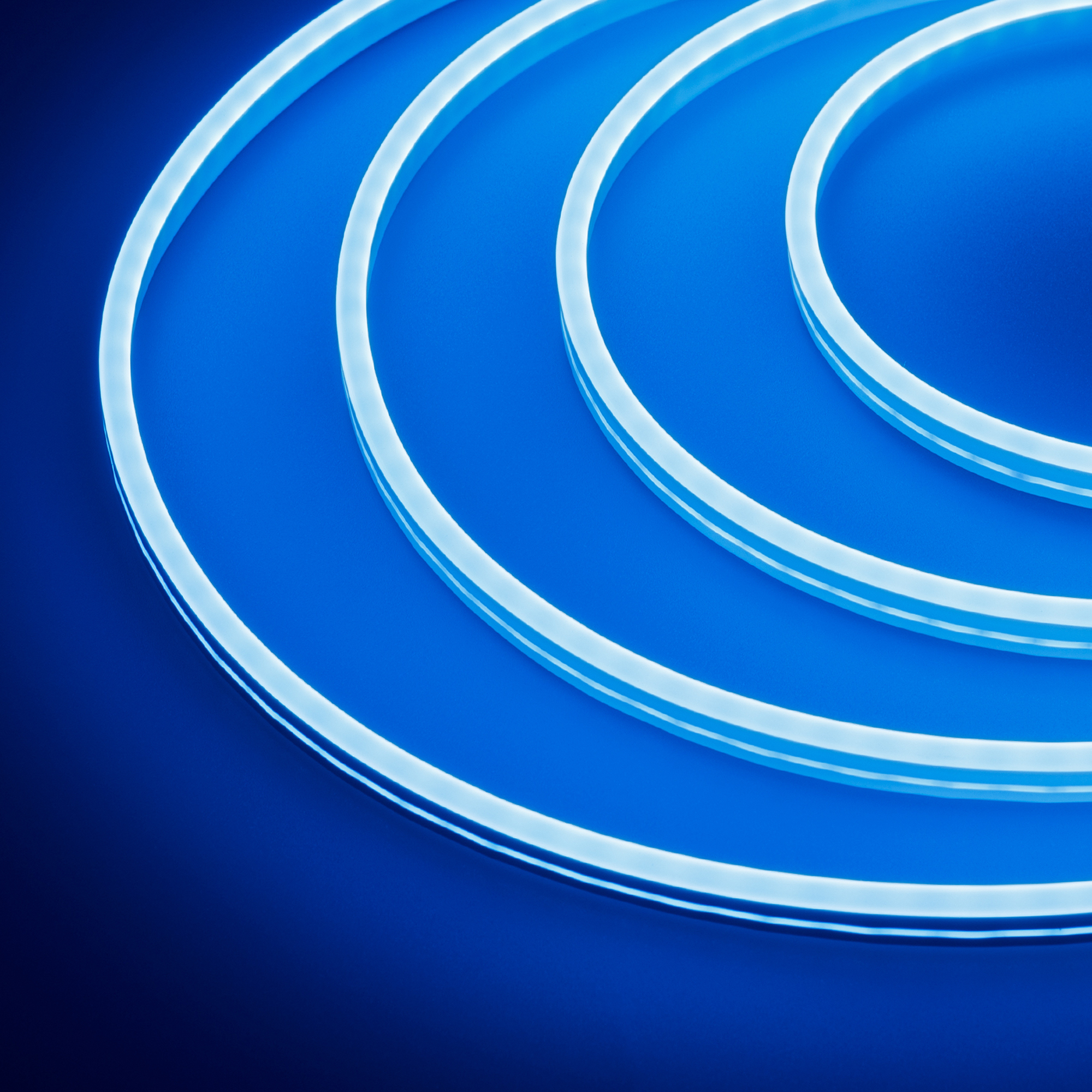 Гибкий неон GALAXY в силиконовой оболочке. Светодиоды SMD2835, 120 шт-м, цвет ГОЛУБОЙ. Сечение 12х6 мм, горизонтальный (боковой) изгиб, IP67, шаг резки 10 мм, мощность 12 Вт-м, напряжение питания DC 12V. Укомплектован заглушками и 30см проводом питания.