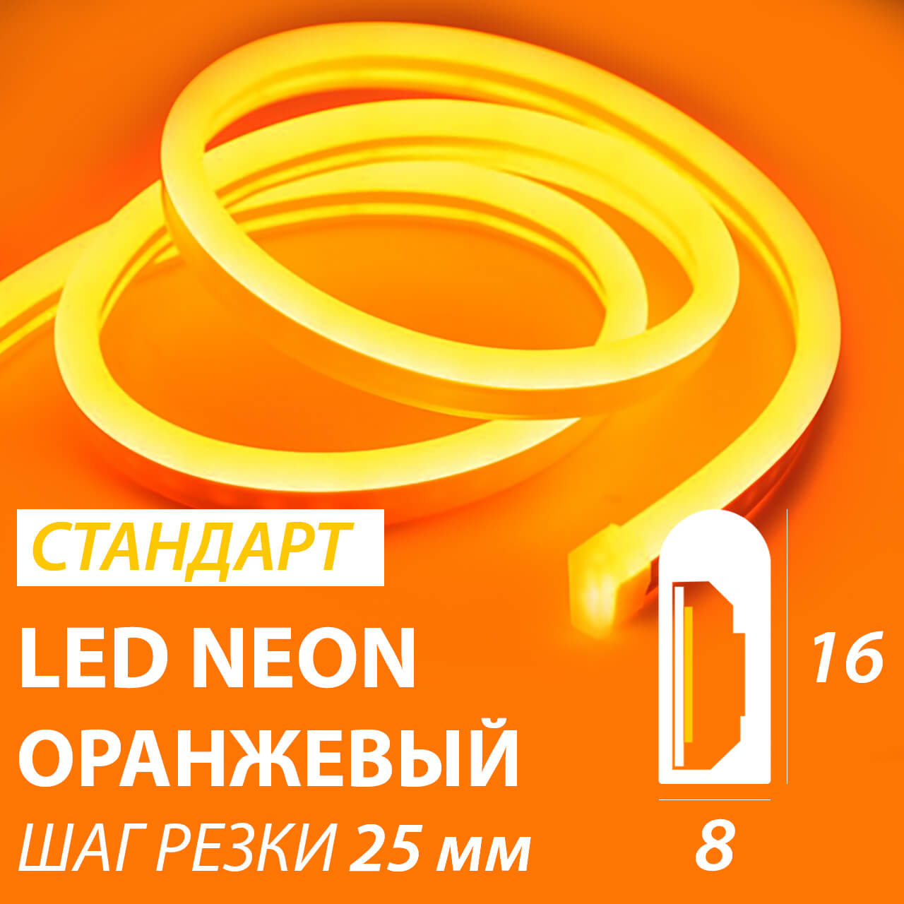 —Гибкий неон 12V 8х16мм оранжевый силикон 9.6Вт-12В-120Led-IP67