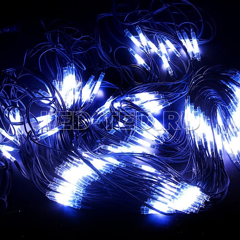Благодаря использованюя в гирлянде светодиодов, ее отличительной особенностью является превосходная яркость и низкое энергопотрбление по сравнению с лампами накаливания.