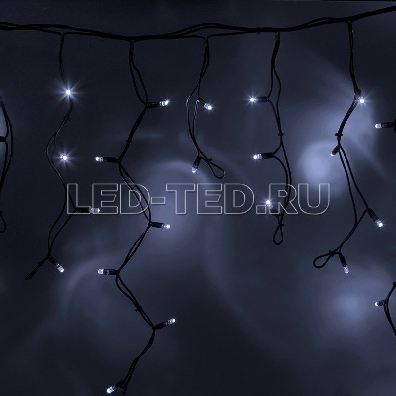 Данная гирлянда имеет Белый цвет свечения. Ее особенностью является наличие мерцающих светодиодов Белого цвета, которые привлекают внимание и значительно преображают украшенную поверхность (мерцает каждый пятый светодиод).