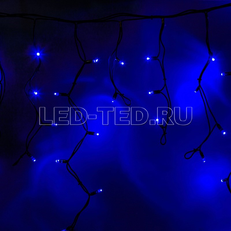Данная гирлянда имеет Синий цвет свечения. Ее особенностью является наличие мерцающих светодиодов Белого цвета, которые привлекают внимание и значительно преображают украшенную поверхность (мерцает каждый пятый светодиод).