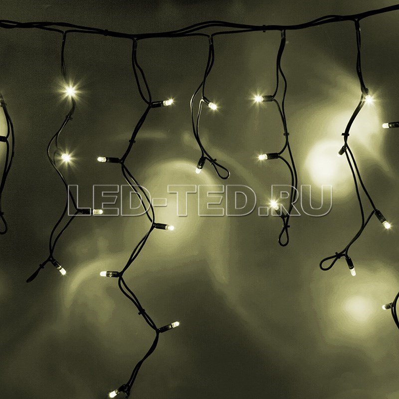 Данная гирлянда имеет Теплый белый цвет свечения. Ее особенностью является наличие мерцающих светодиодов Белого цвета, которые привлекают внимание и значительно преображают украшенную поверхность (мерцает каждый пятый светодиод).