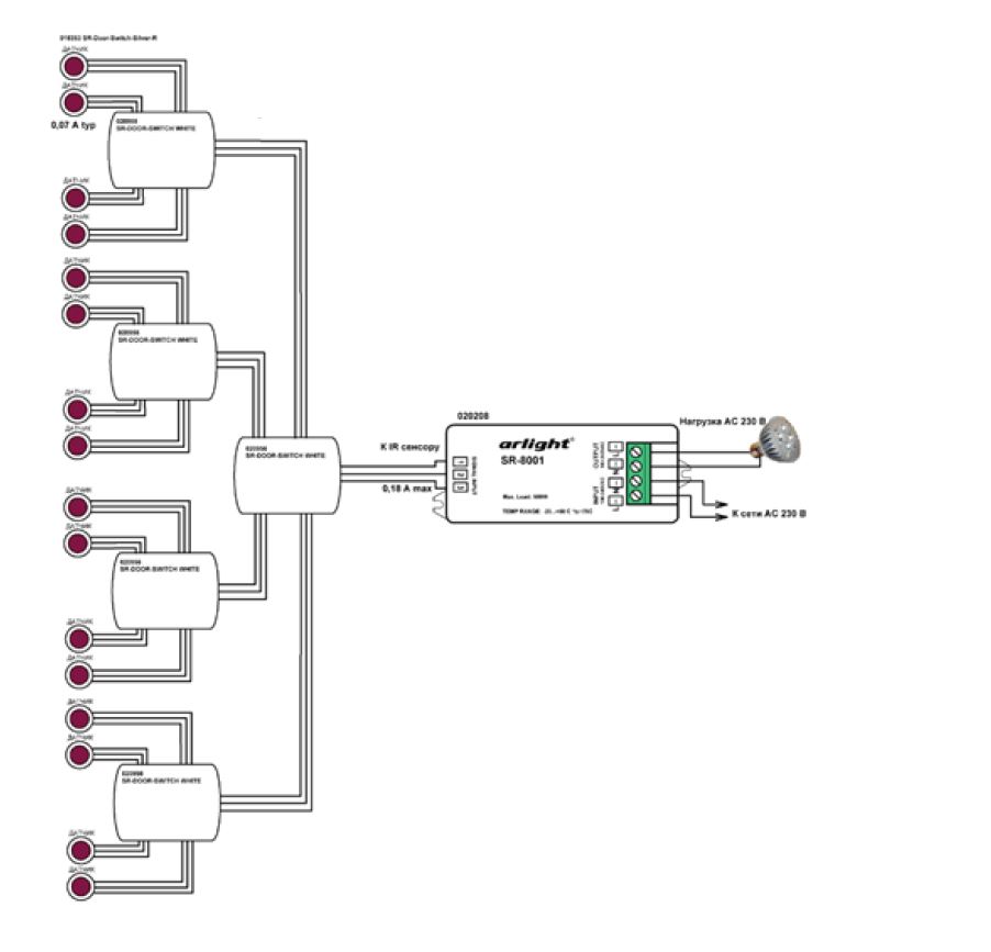 ИК-сплиттер SR-Door-Switch White предназначен для подключения до 4 ИК-датчиков к одному блоку управления (4 входа, 1 выход). Работает совместно с диммерами SR-2901, SR-8001B, SR-8001BDC (приобретаются отдельно). Размеры корпуса составляют 51х30х16 мм, а длина кабеля 1,5м. Отличное решение по оптимизации системы управления в многоуровневых мебельных конструкциях.