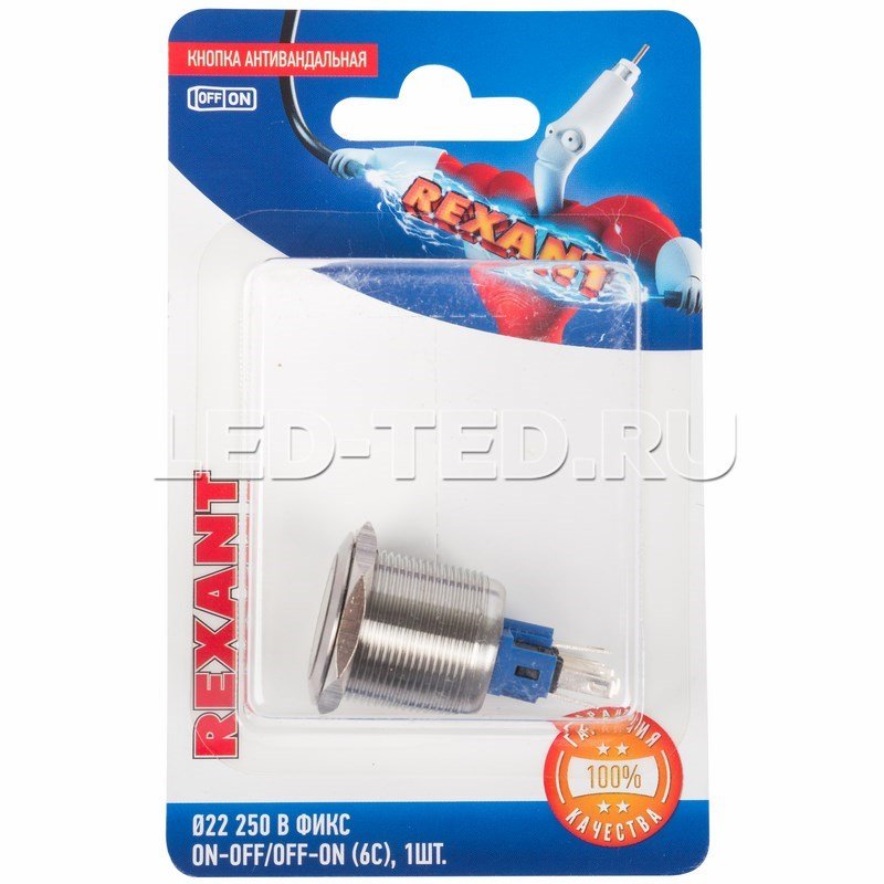 Кнопка антивандальная Ø 22 250В Фикс (6с) ON-OFF/OFF-ON подсв/синяя (в упак. 1шт.) 06-0378-B купить в интернет-магазине LED-TED 509-25-35