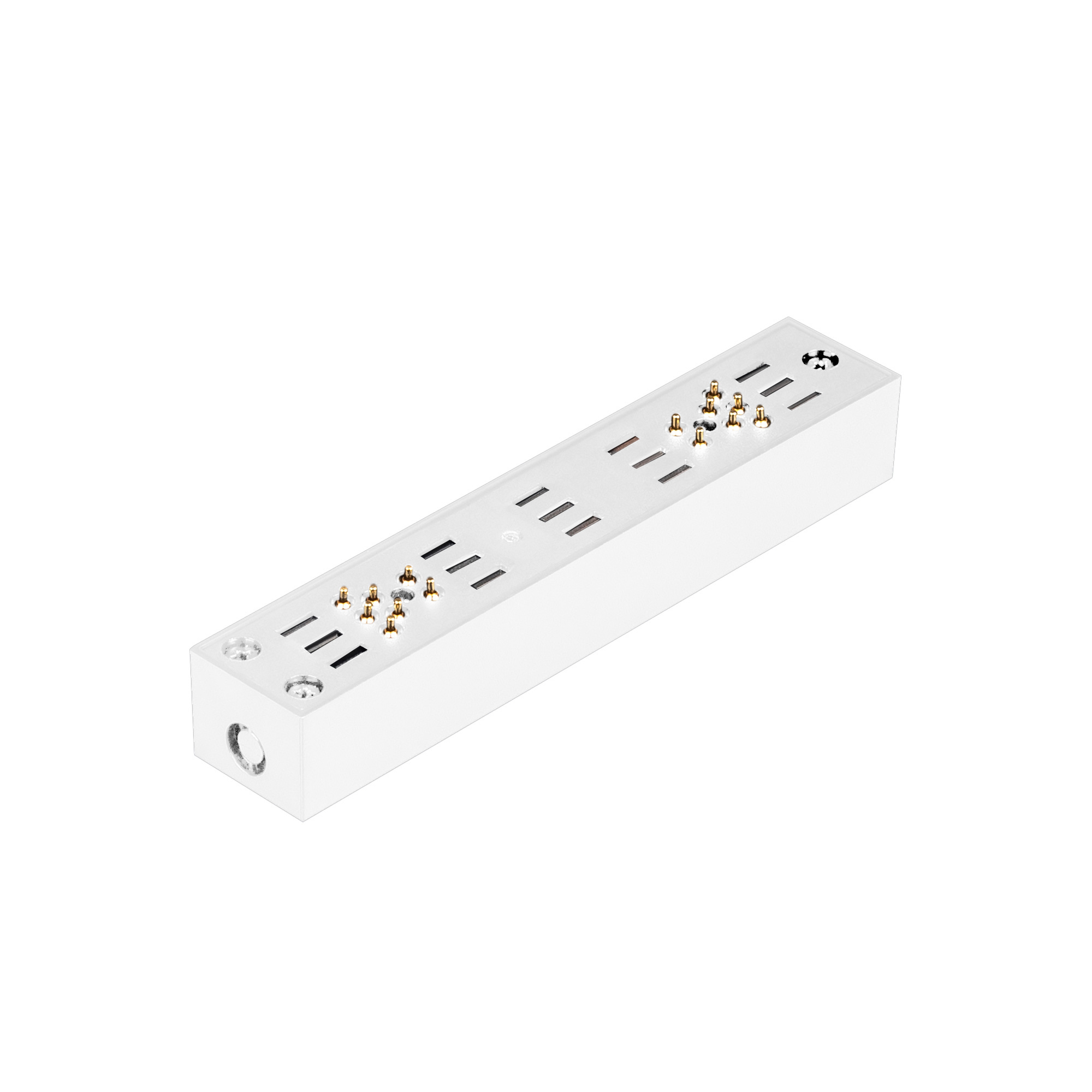 Прямой белый коннектор для электрического соединения треков MAG-25 между собой. Размеры: 110х20х17 мм. Максимальная мощность системы 200 Вт
