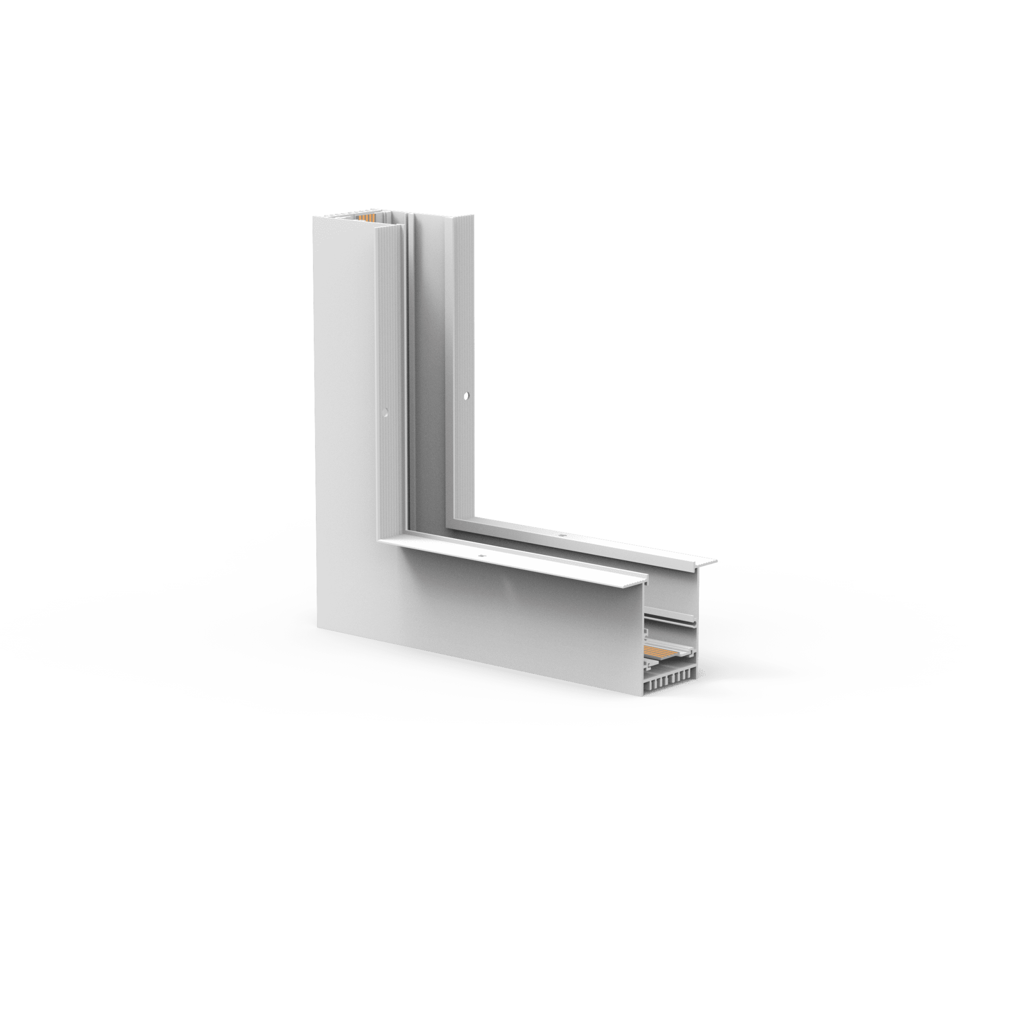 Угловой внутренний коннектор для встраиваемого трека MAG-TRACK-4560-F. Материал алюминий, цвет белый. Размеры 216,5x216,5x75x60мм. DC24V. Аксессуары для соединения с треком приобретаются отдельно.