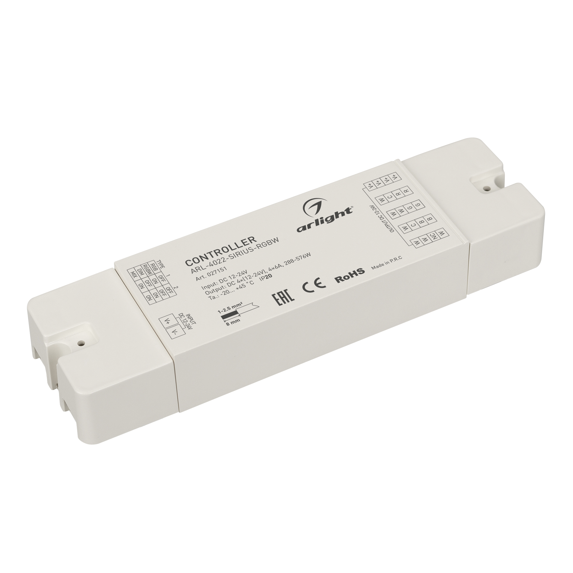 Контроллер для светодиодной RGBW ленты (ШИМ). Питание/рабочее напряжение 12-24VDC, максимальный ток 6A на канал, 4 канала, максимальная мощность 288-576W. Винтовые клеммы. Корпус - PVC. Габариты 160х46х25 мм. Совместимые пульты см. в сопутствующих товарах.