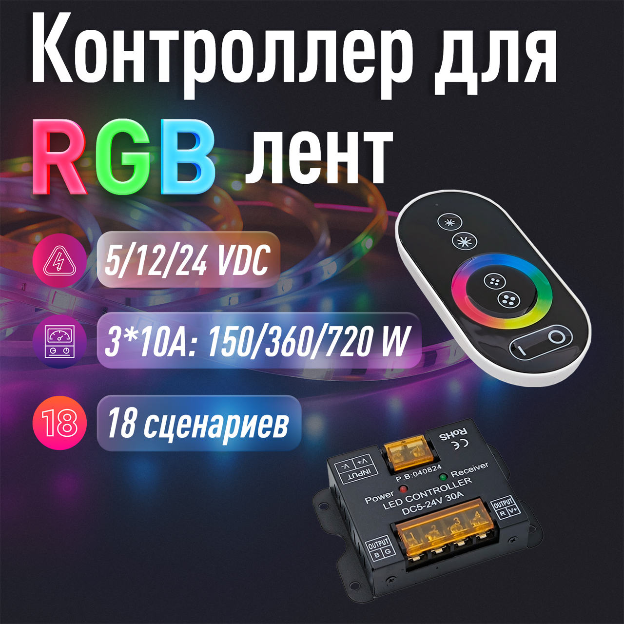 Контроллер RGB Сенсорный RG-KQ-12 (3*10A)RGB    1055 (напряжение: 12-24В ток:3*10А)