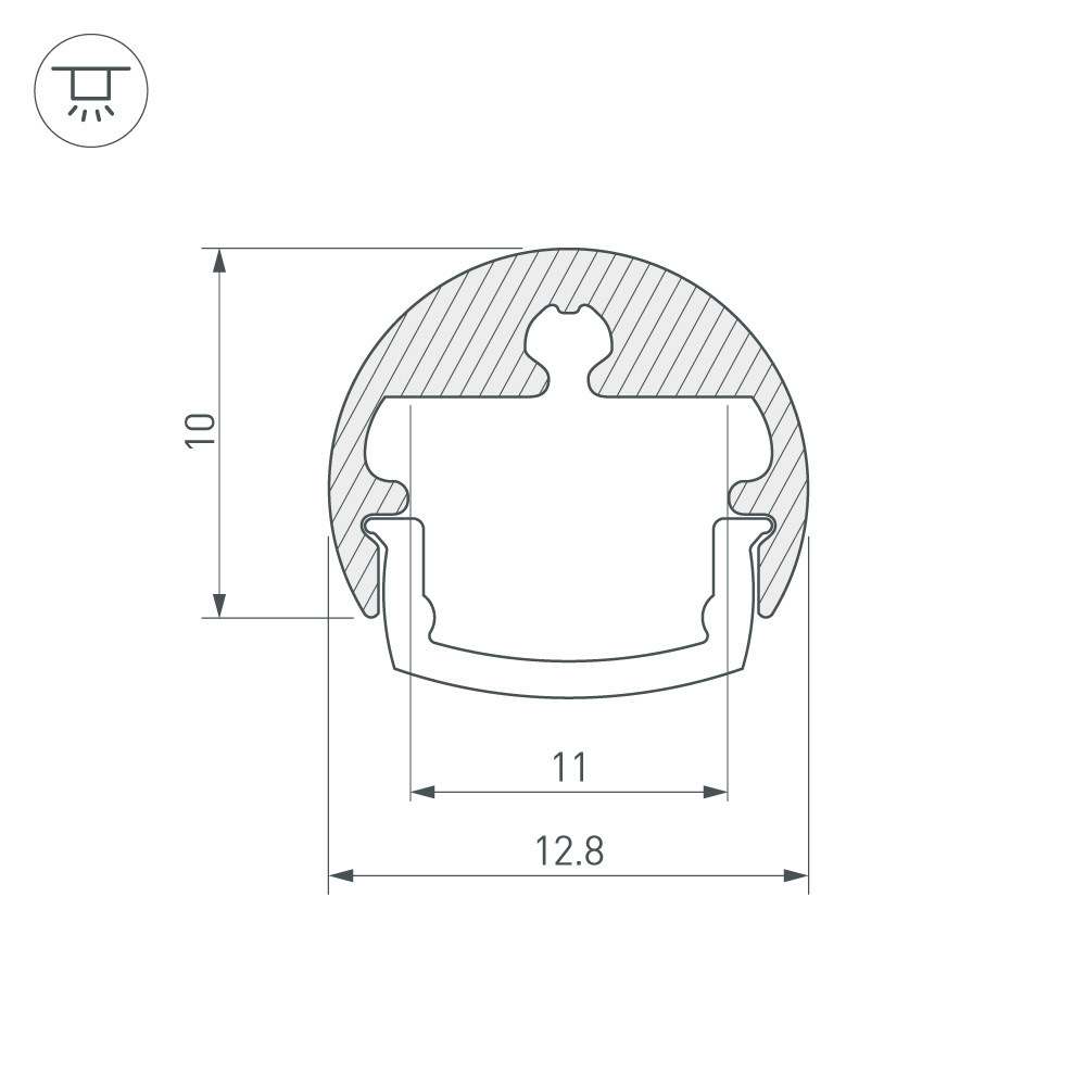 Круглый мини-профиль для поворотных и выносных светильников, замены ламп Т5. Анодированный. Аксессуары, крепеж, выносная и поворотная установка. Для лент до 10мм. Совместим экраном K10F. Размеры 2000х13х10 мм. Модификация I - литое основание для ленты. 019653