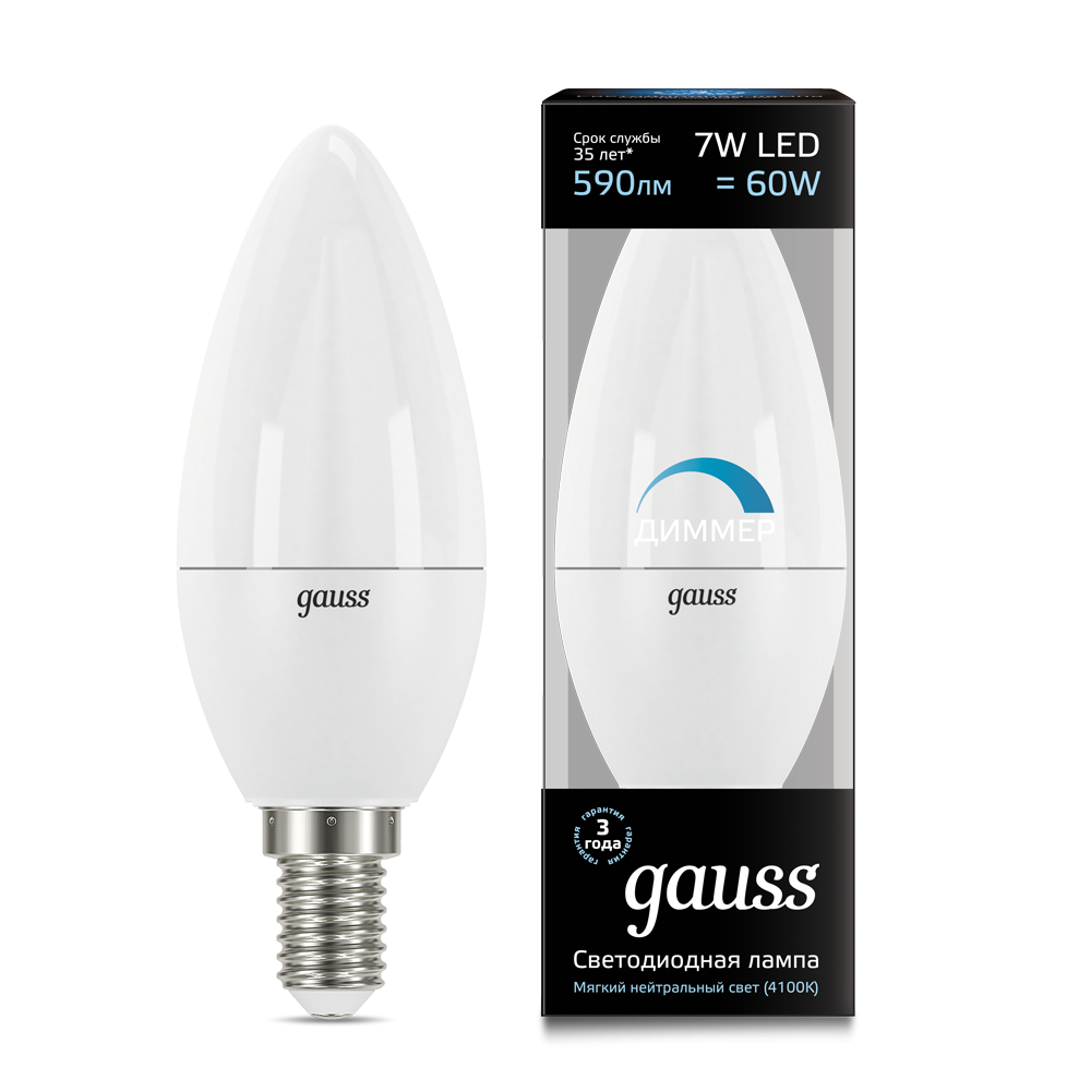 Лампа Дневная 4100К диммируемая Gauss E14 7W