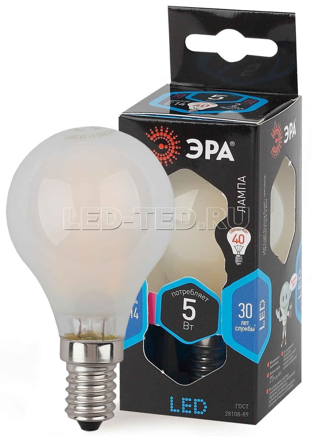 —Лампа E14 F-LED P45-5W-840-E14 frost (филамент, шар мат., 5Вт, нейтр, E14) 5055945576580