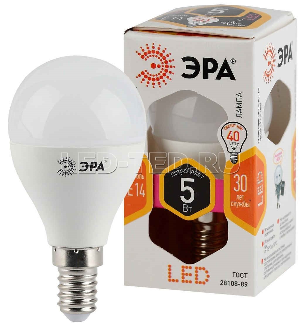 Лампа E14 LED P45-5W-827-E14 (диод, шар, 5Вт, тепл, E14)