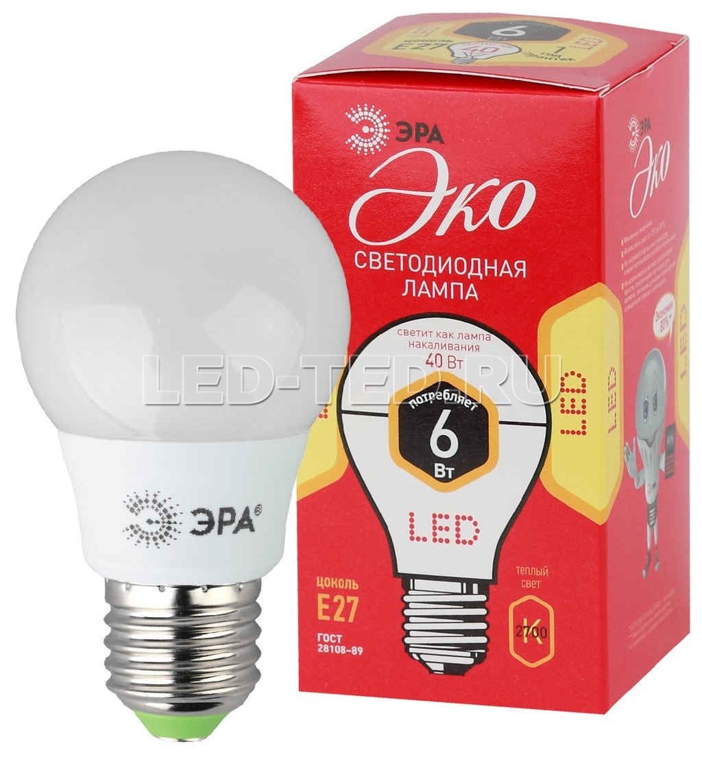 Лампа E27 ECO LED A55-6W-827-E27 (диод, груша, 6Вт, тепл, E27)