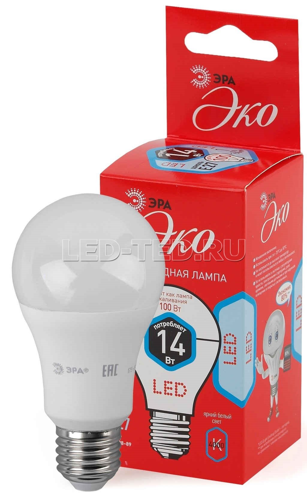 Лампа E27 ECO LED A60-14W-840-E27 (диод, груша, 14Вт, нейтр, E27) 5055945593693