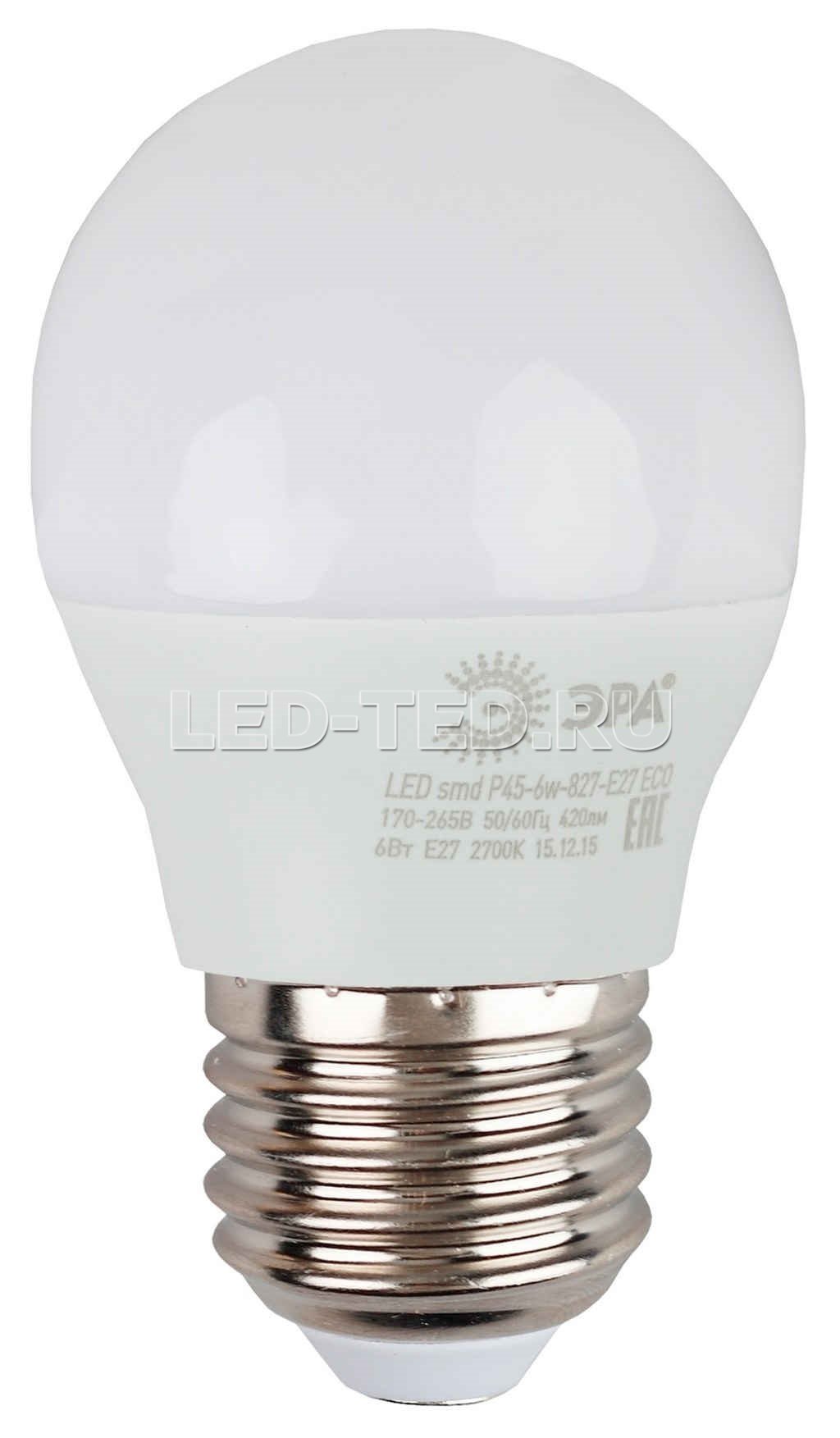 —Лампа E27 ECO LED P45-6W-840-E27 (диод, шар, 6Вт, нейтр, E27)