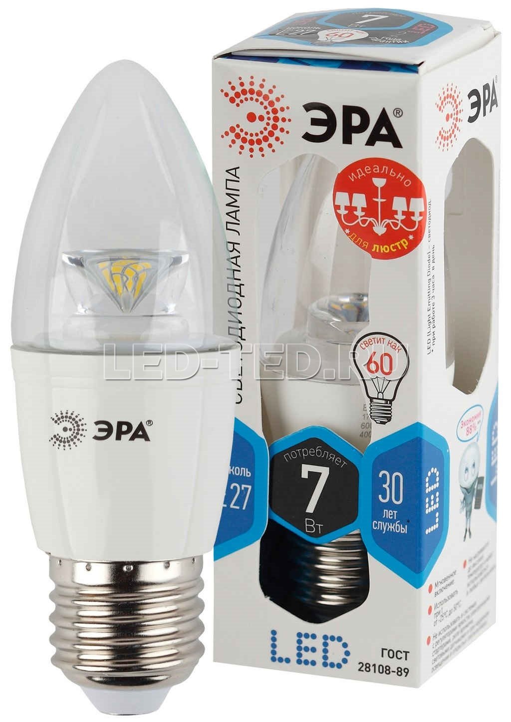 —Лампа E27 LED B35-7W-840-E27-Clear (диод, свеча, 7Вт, нейтр, E27)