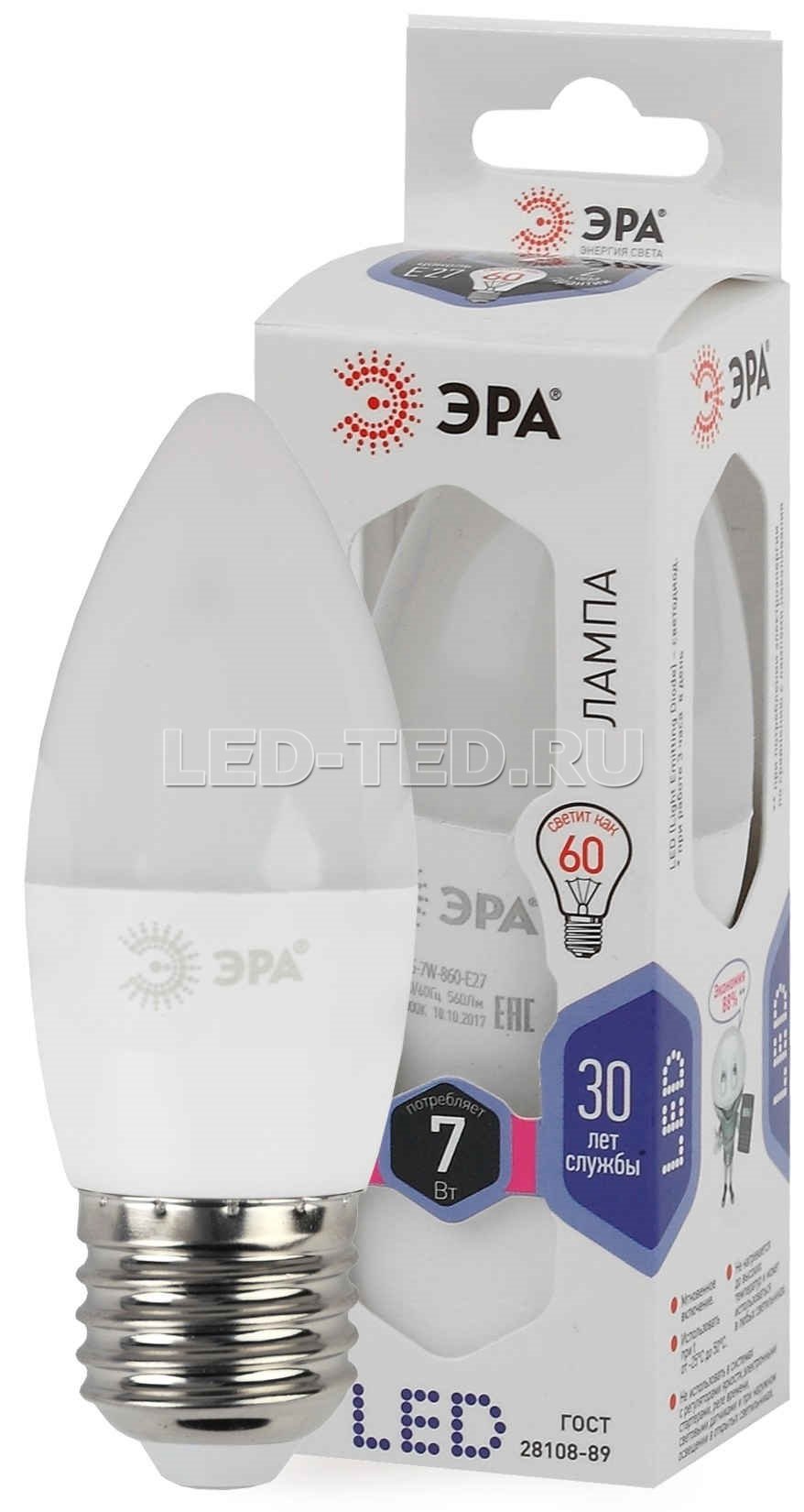 —Лампа E27 LED B35-7W-860-E27 (диод, свеча, 7Вт, хол, E27) 5056183700317
