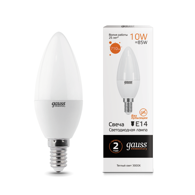 —Лампа Gauss LED Elementary Candle 10W E14 3000K 1/10/100