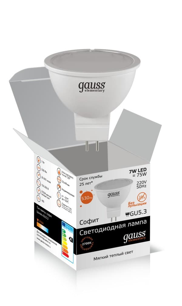 —Лампа Gauss LED Elementary MR16 GU5.3 7W 3000K 1/10/100