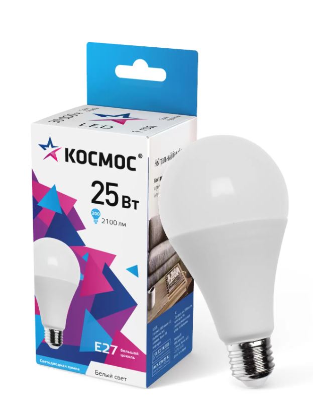 —Лампа светодиодная LED 25Вт 220В E27 D65х130 4500 белый A65 Космос