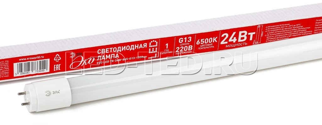 —Лампа T8-24W-865-G13-1500mm ECO LED 6500K (диод, трубка стекл, 24Вт,хол,непов. G13)