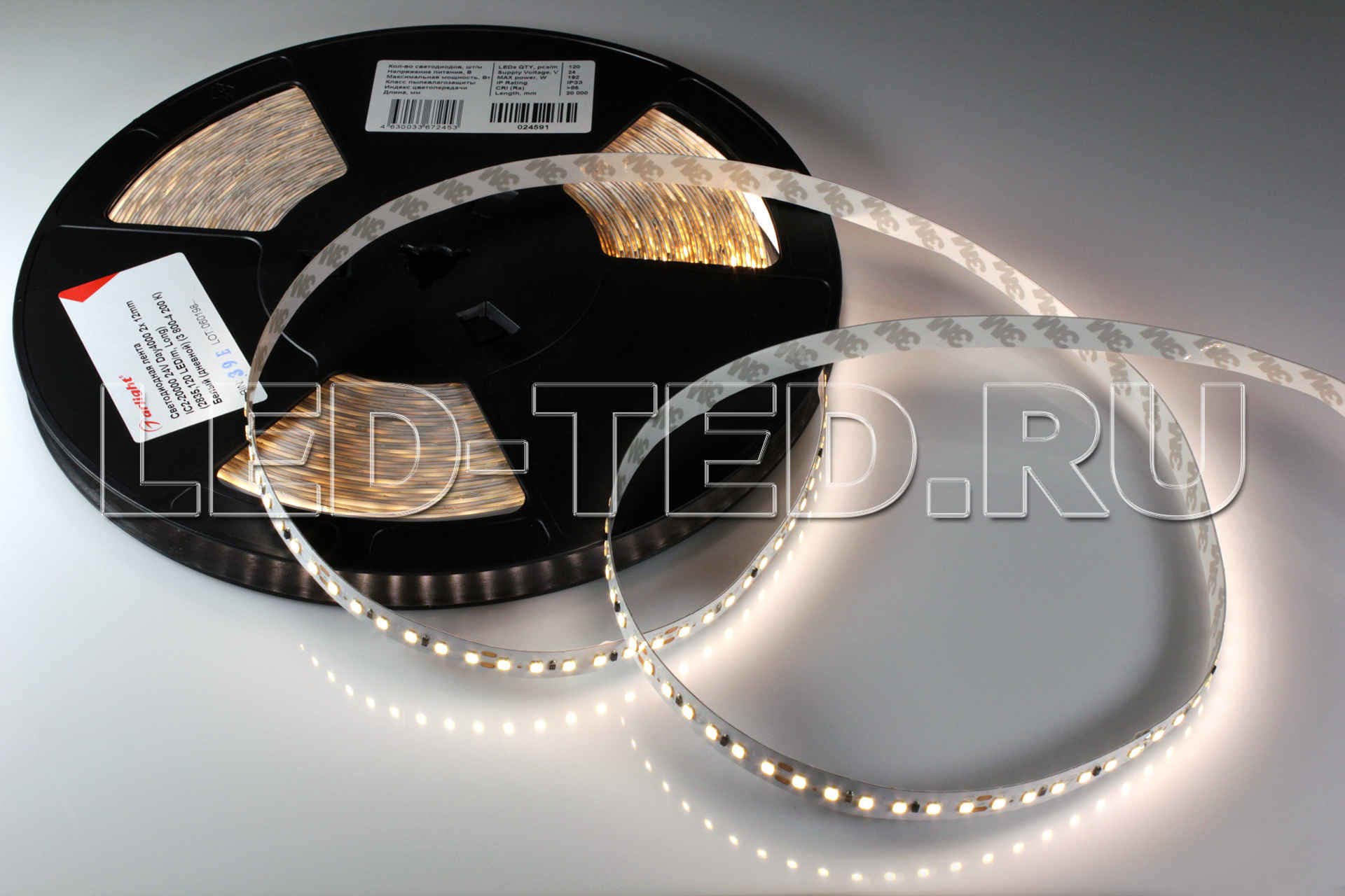 Рулон 20м стабилизированная лента, светодиоды smd 2835, 120шт/м 2400шт на 20м, белая плата 12мм, скотч 3М. Цвет ДНЕВНОЙ 3800-4200K. Угол 120°, цветопередача CRI>85. Питание 24V, мощность 9.6 Вт/м 192 Вт на 20м. Размеры 20000х12х1.5мм. Мин.отрезок 50мм, 6 светодиодов. Цена за 1м. 024591