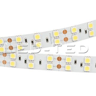 Гибкая лента LUX, 2 ряда светодиодов smd 5060, 120шт/м 600шт на 5м, белая плата 15мм, скотч 3М. Цвет БЕЛЫЙ 5800-6500K. Питание 24V, мощность 28.8 Вт/м 144 Вт на 5м, угол 120°, цветопередача CRI>85. Размеры 5000х15х2.2мм. Мин.отрезок 50мм, 6 светодиодов. Цена за 1м. 011256(1)