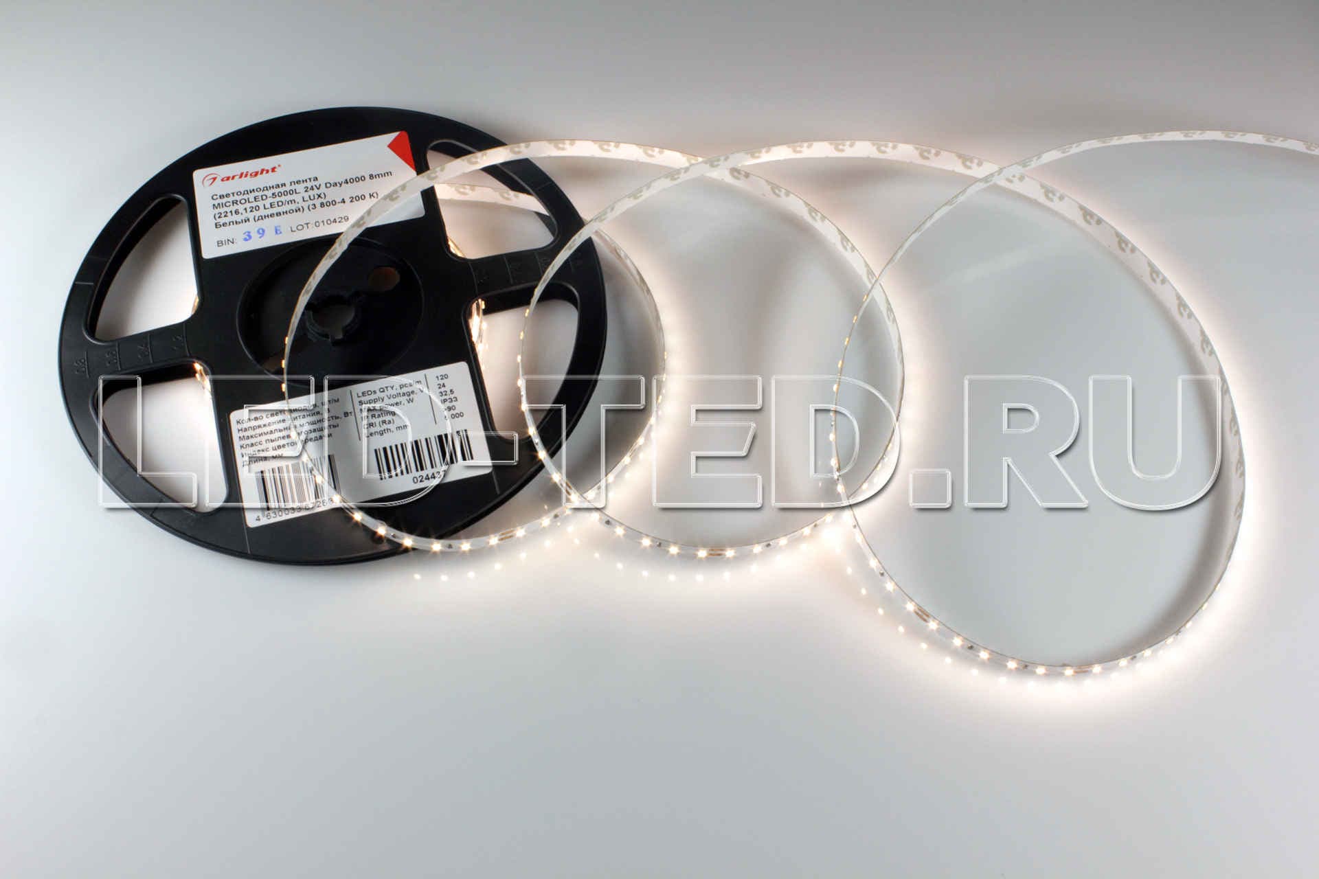 Маломощная Лента MICROLED, светодиоды smd 2216, 120шт/м 600шт на 5м, белая плата 8мм, скотч 3М. Цвет ДНЕВНОЙ 3800-4200K. Питание 24V, мощность 6.5 Вт/м 32.5 Вт на 5м, угол 120°, цветопередача CRI>90. Размеры 5000х8х1.2мм. Мин.отрезок 50мм, 6 светодиодов. Цена за 1м. 024437