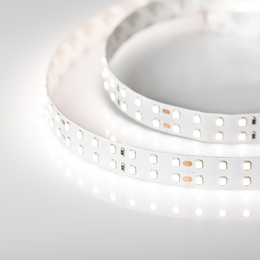 Гибкая лента LUX, светодиоды smd 2835, 196 шт/м 980шт на 5м, белая плата 15 мм, скотч 3М. Цвет ДНЕВНОЙ 4800-5200K. Питание 24V, мощность 20 Вт/м 100 Вт на 5м, угол 120°, цветопередача CRI 95..98. Размеры 5000х15x1.5мм. Мин.отрезок 71.43мм, 14 светодиодов. Цена за 1м. 025150(1)