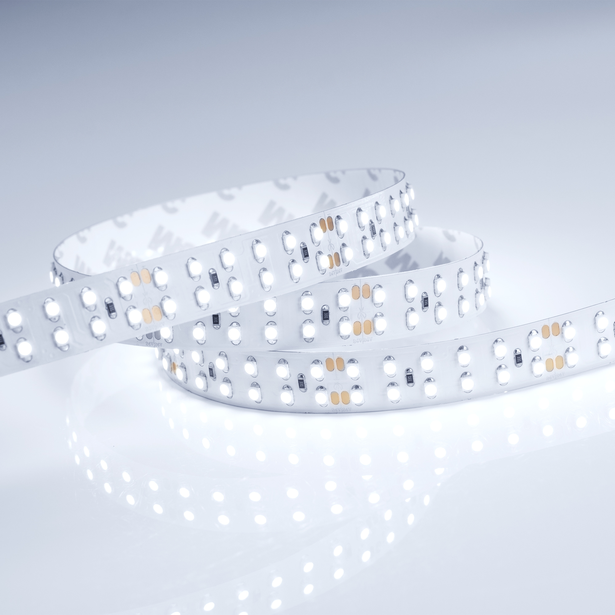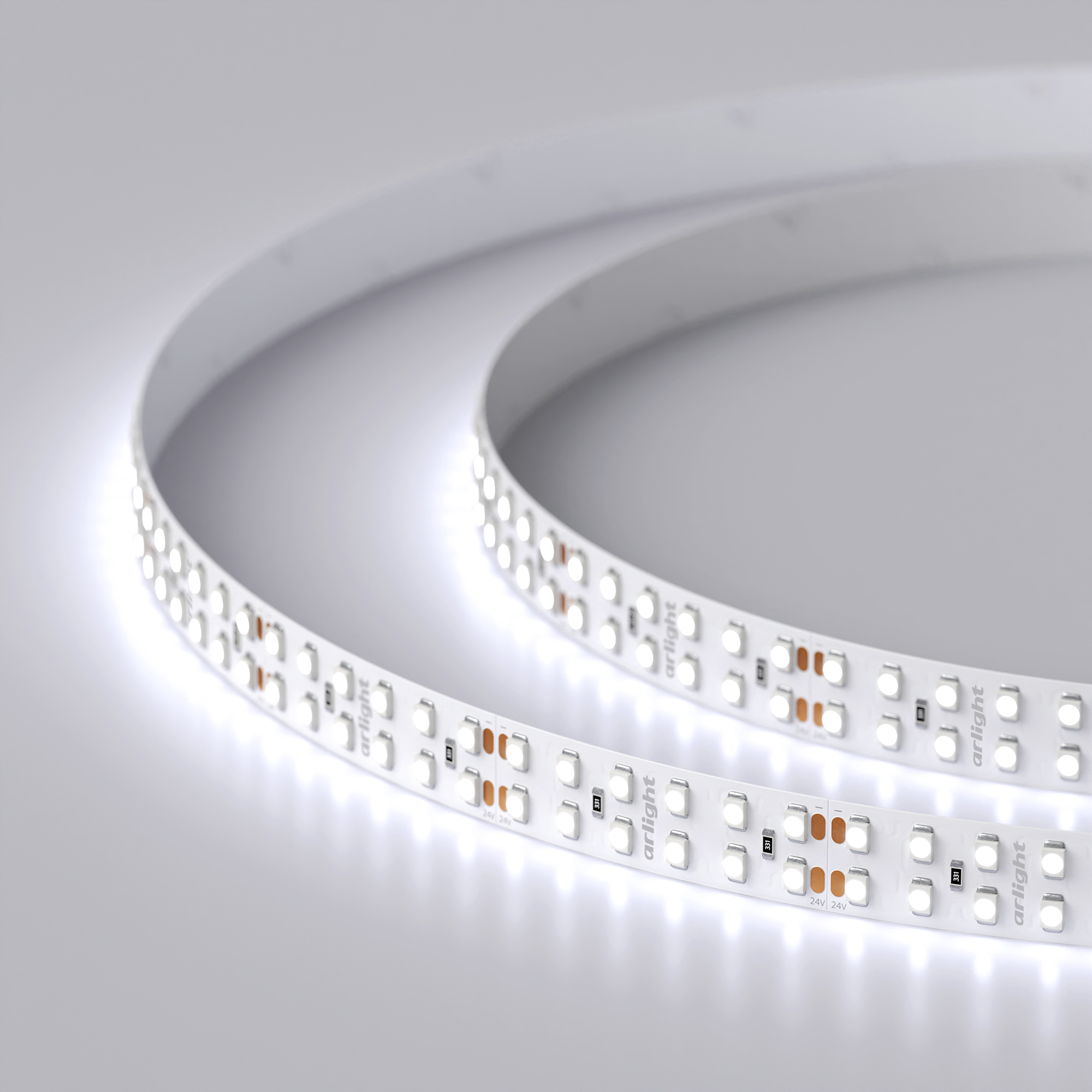 Гибкая лента LUX, 2 ряда, светодиоды smd 3528, 240шт/м 1200шт на 5м, белая плата 15мм, скотч 3М. Цвет ХОЛОДНЫЙ 7700-9600K. Питание 24V, мощность 19.2 Вт/м 96 Вт на 5м, угол 120°, цветопередача CRI>85. Размеры 5000х15x2.4мм. Мин.отрезок 50мм, 12шт светодиодов. Пакет 5м. Цена за 1м. 013746