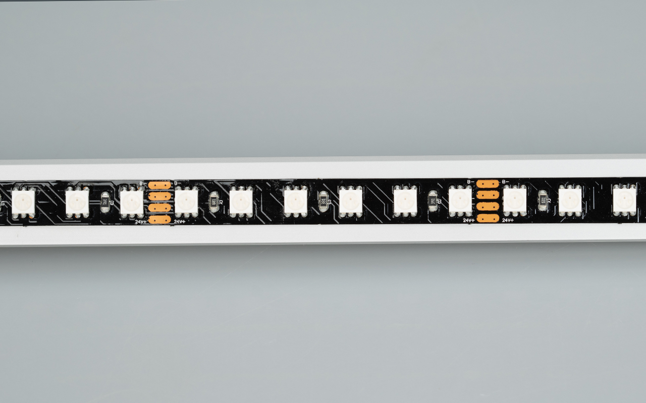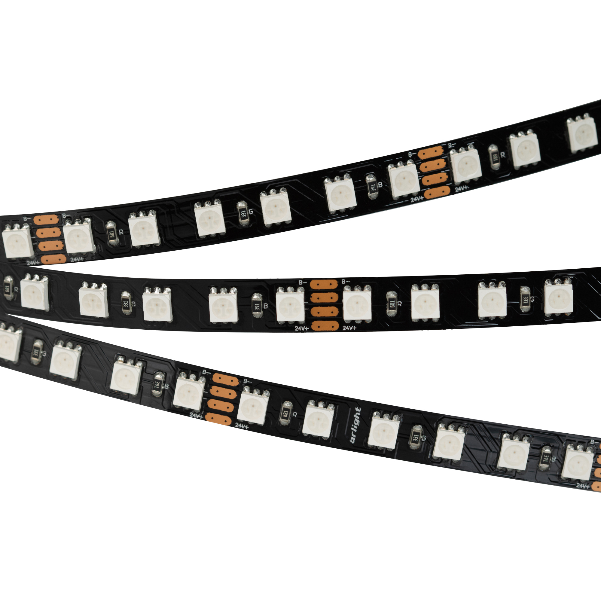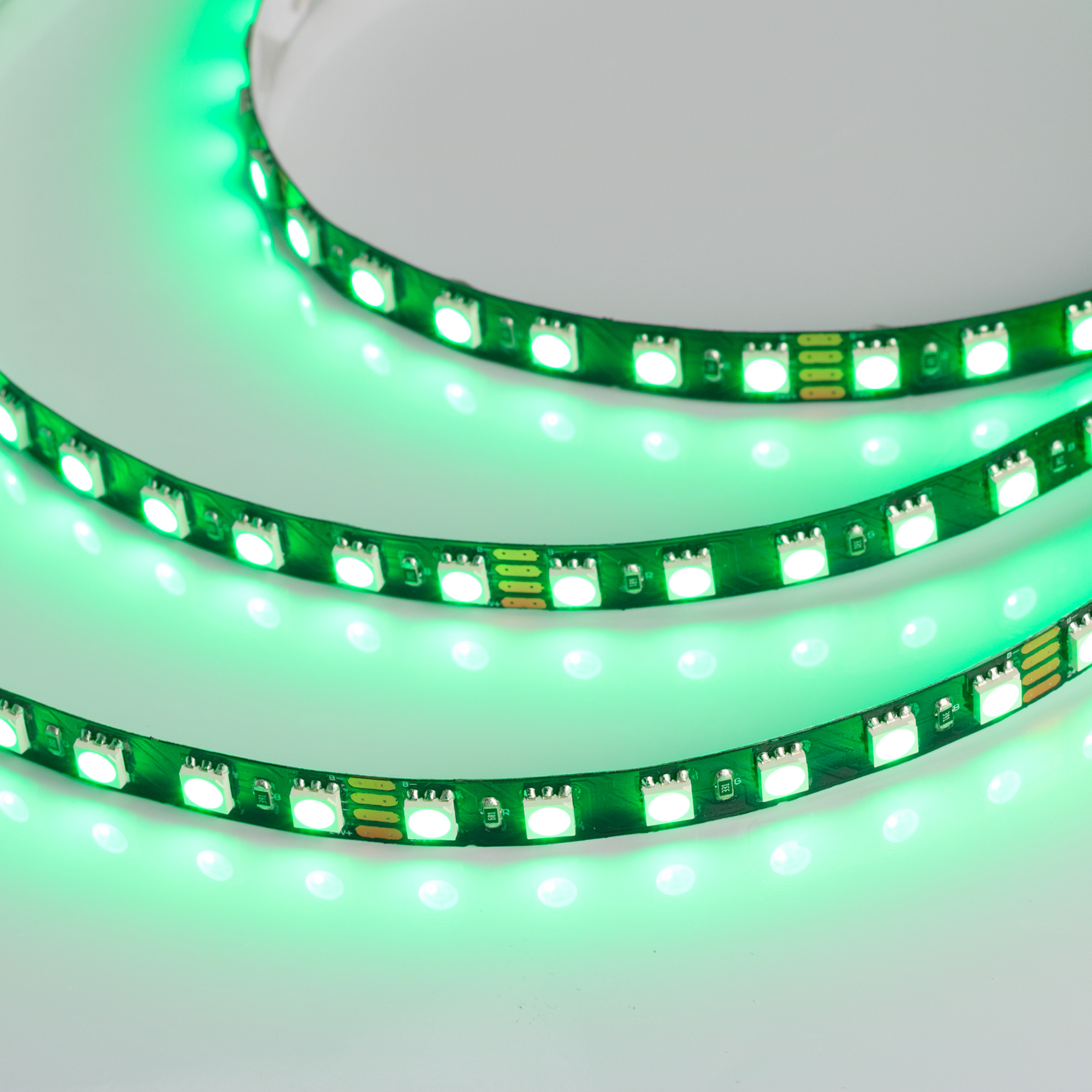 Гибкая лента RGB, smd 5060, 84шт/м 420шт на 5м, ЧЕРНАЯ плата 10мм, скотч 3М. Цвет Мультицвет R/G/B. Питание 24V, мощность 21 Вт/м 105 Вт на 5м, угол 120°. Размеры 5000х10x2.2мм. Мин.отрезок 71.43 мм, 6 светодиодов. Использовать только на алюм.профиле! Цена за 1м. 021759