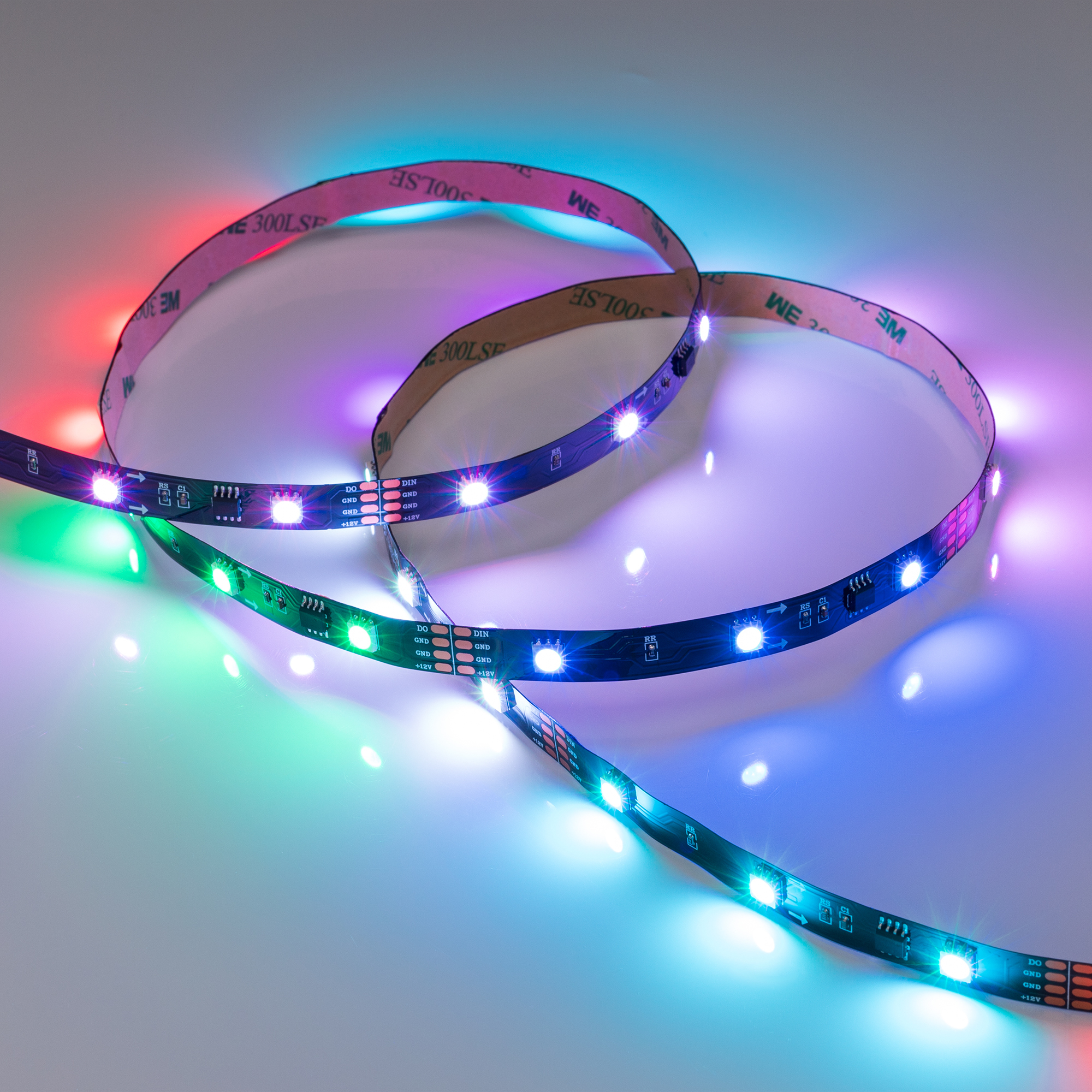 Лента «Бегущие огни» на ЧЕРНОЙ подложке, с драйвером 1804, открытая IP20, встроенный в ленту контроллер с автозапуском 300 программ Auto mode и подкл-ем внеш. контроллера. Длина 5м, 150шт LED RGB 5060, 10 pixel/m 1 pixel = 3 LED. Питание 12V, ном. мощн. 5 Вт/м, макс. мощн-ть 6,5 Вт/м статический белый цвет. Ширина 10 мм. Негерметичные прямоугольные коннекторы. (1)