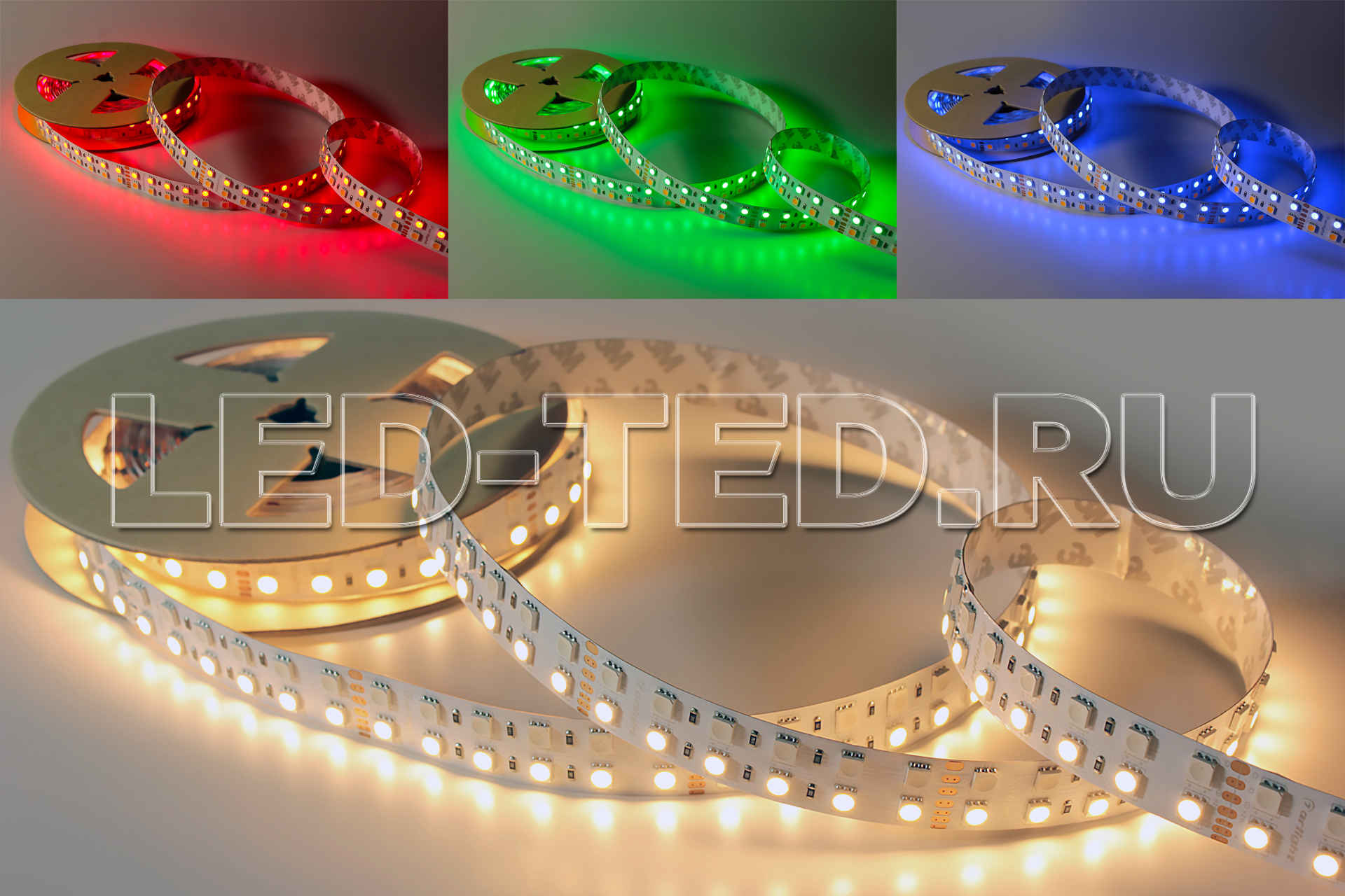 RGB+Warm мультицветная лента, 2 ряда светодиодов smd 5060, 144шт/м (720шт на 5м), белая плата 19мм, скотч 3М. Цвет Мультицвет R/G/B+Тёплый 2600-2800K. Питание 24V, мощность 160 Вт на 5м, из них R/G/B=16 Вт/м (5.3 Вт/м канал), белый W=16 Вт/м, угол 120°. Размеры 5000х19х2.2мм. Мин.отрезок 83.3мм, 12 светодиодов. Цена за 1м.