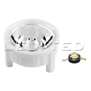 20° линза для светодиода 'Emitter'. Поверхность прозрачная. Белый держатель (3 ножки, под винт). Габариты 23*14,1 mm