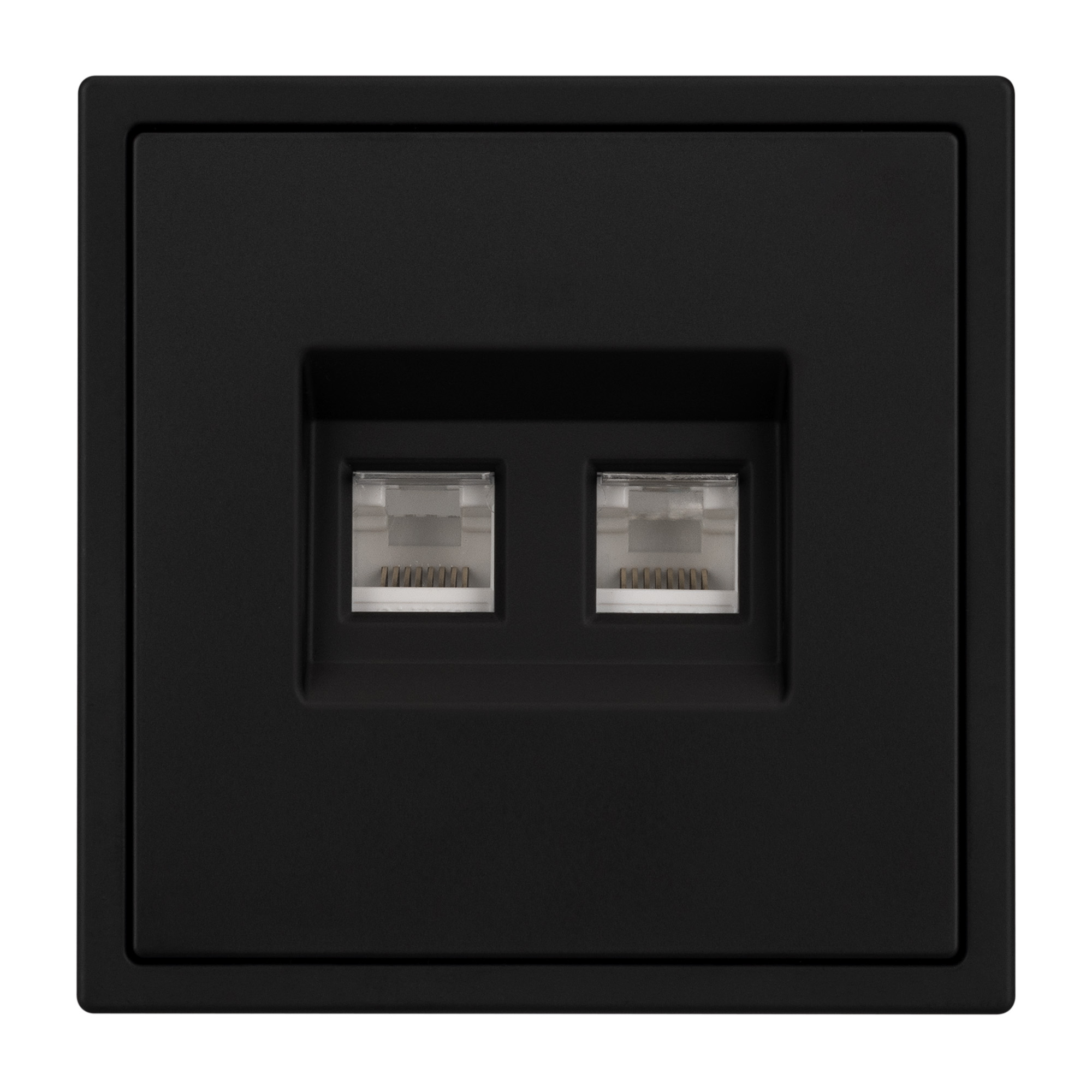 Механизм двойной телефонной розетки. Цвет - черный оникс, с Soft-Touch покрытием. Без фронтальной рамки. Уровень пылевлагозащиты IP20. Тип подключаемого разъема - RJ11. Розетка устанавливается в стандартный подрозетник круглого сечения диаметром 60мм.