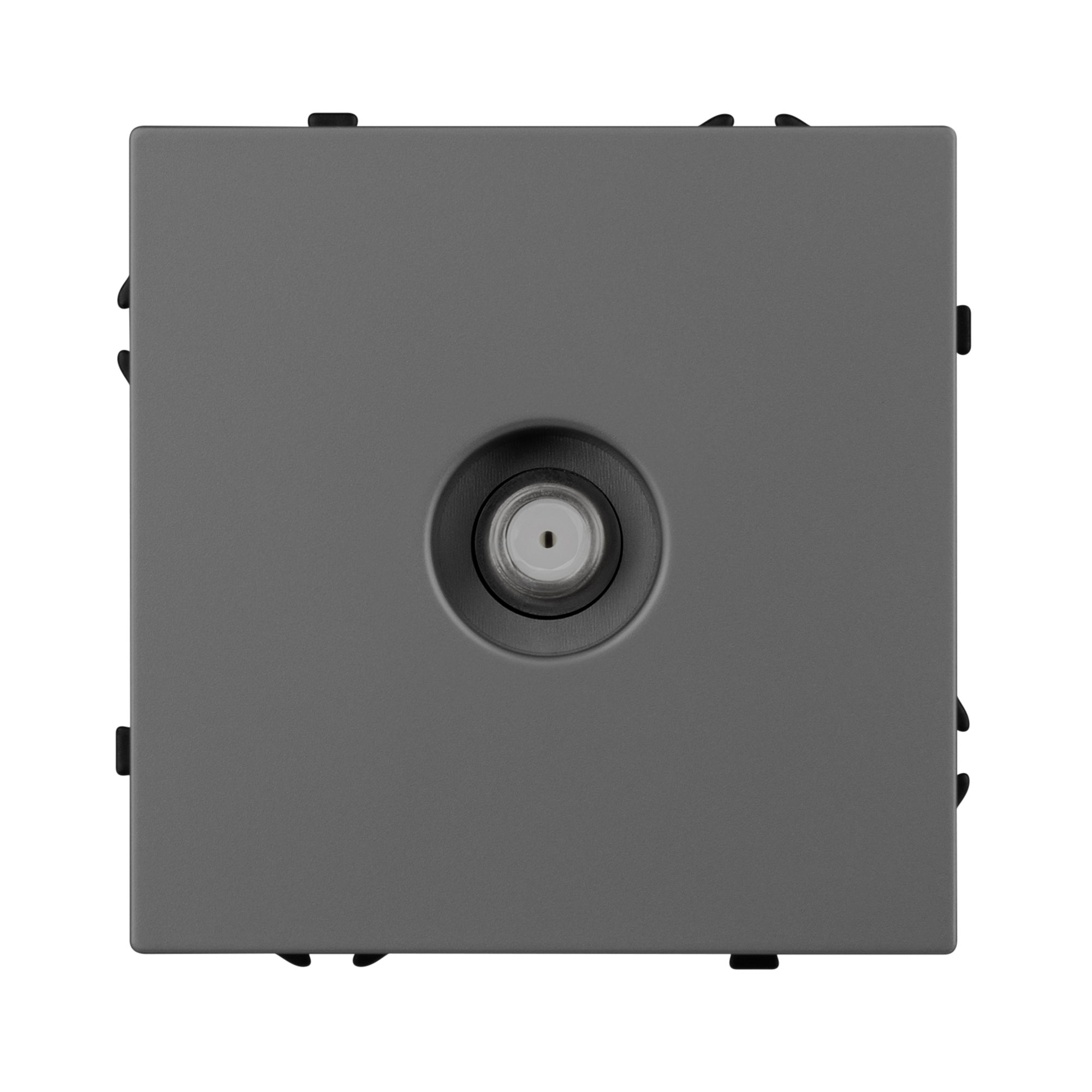 Механизм розетки для подключения спутниковой антенны на 1 пост. Цвет - серый базальт, с Soft-Touch покрытием. Без фронтальной рамки. Уровень пылевлагозащиты IP20.