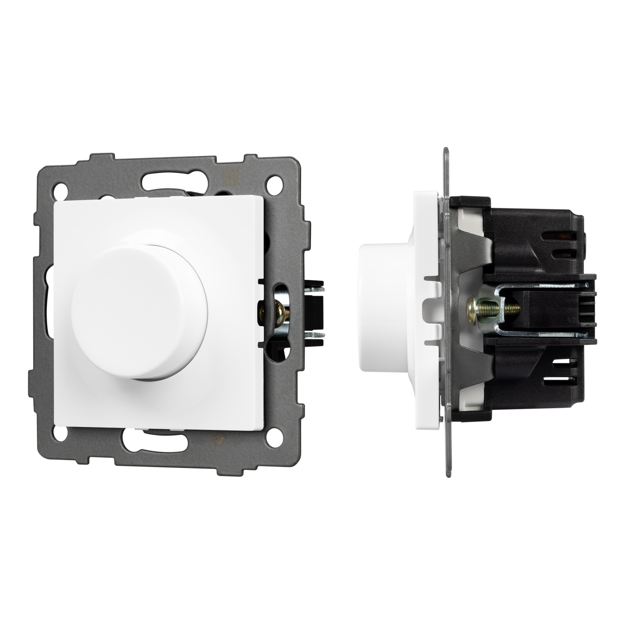 Механизм регулировки света на 1 пост. Цвет - белый. Без фронтальной рамки. Уровень пылевлагозащиты IP20. Механизм устанавливается в стандартный круглый подрозетник. Максимальная выходная мощность 500Вт.