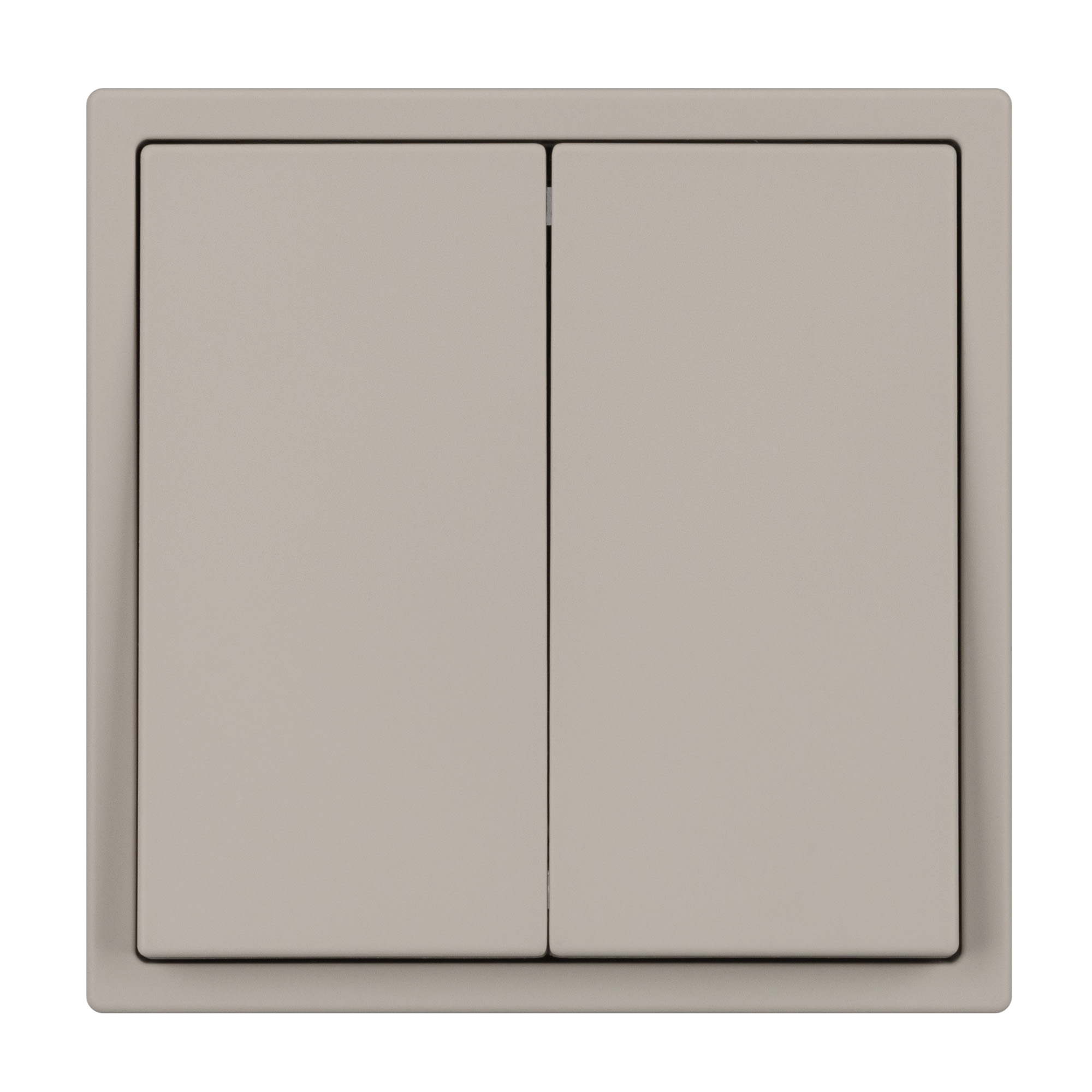 Механизм выключателя света клавишный на 1 пост 2 клавиши (перекрёстный). Цвет - кашемир, с Soft-Touch поверхностью. Без фронтальной рамки. Уровень пылевлагозащиты IP20. Выключатель устанавливается в стандартный круглый подрозетник круглого сечения диаметром 60мм.