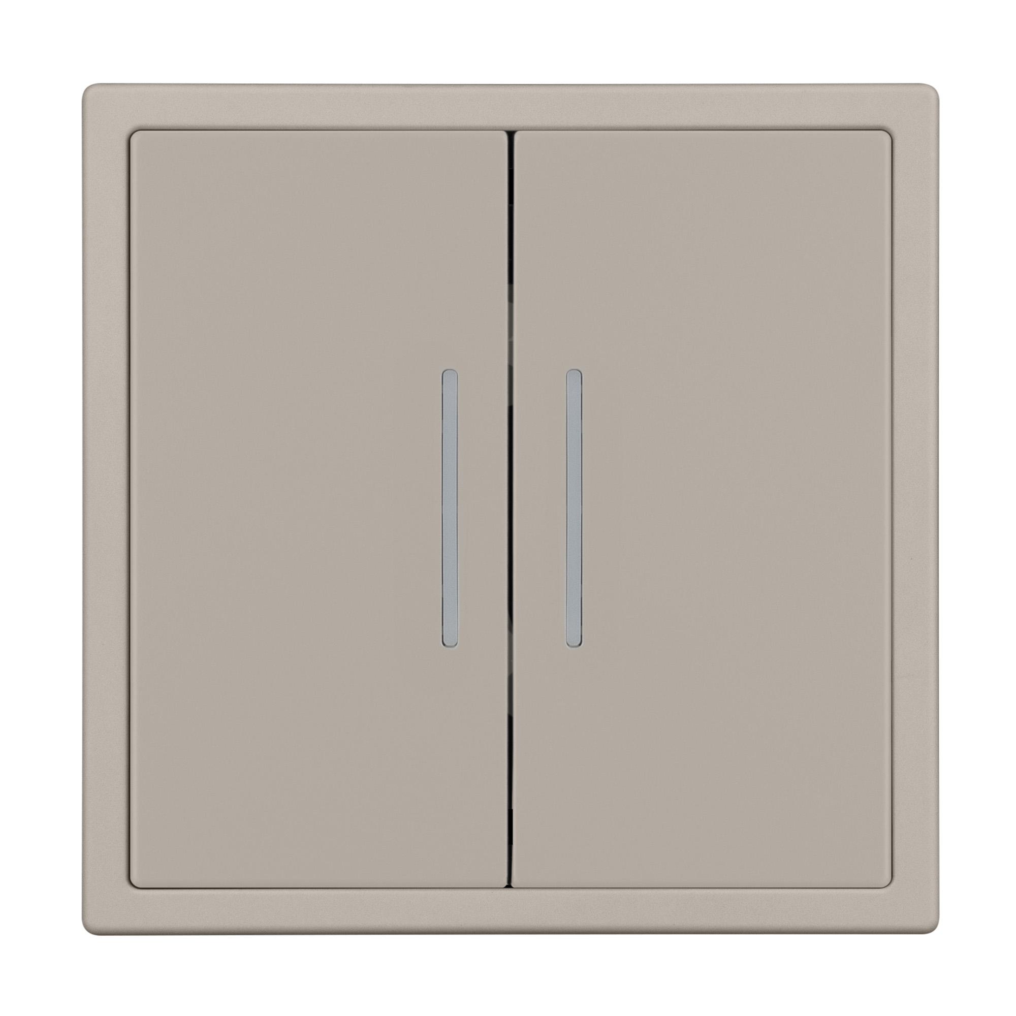 Механизм звонкового выключателя двухклавишный на 1 пост 2 самовозвратные клавиши. Цвет - кашемир, с Soft-Touch покрытием. Клавиша имеют LED подсветку - cинего свечения. Без фронтальной рамки. Уровень пылевлагозащиты IP20. Выключатель устанавливается в стандартный круглый подрозетник круглого сечения диаметром 60мм.