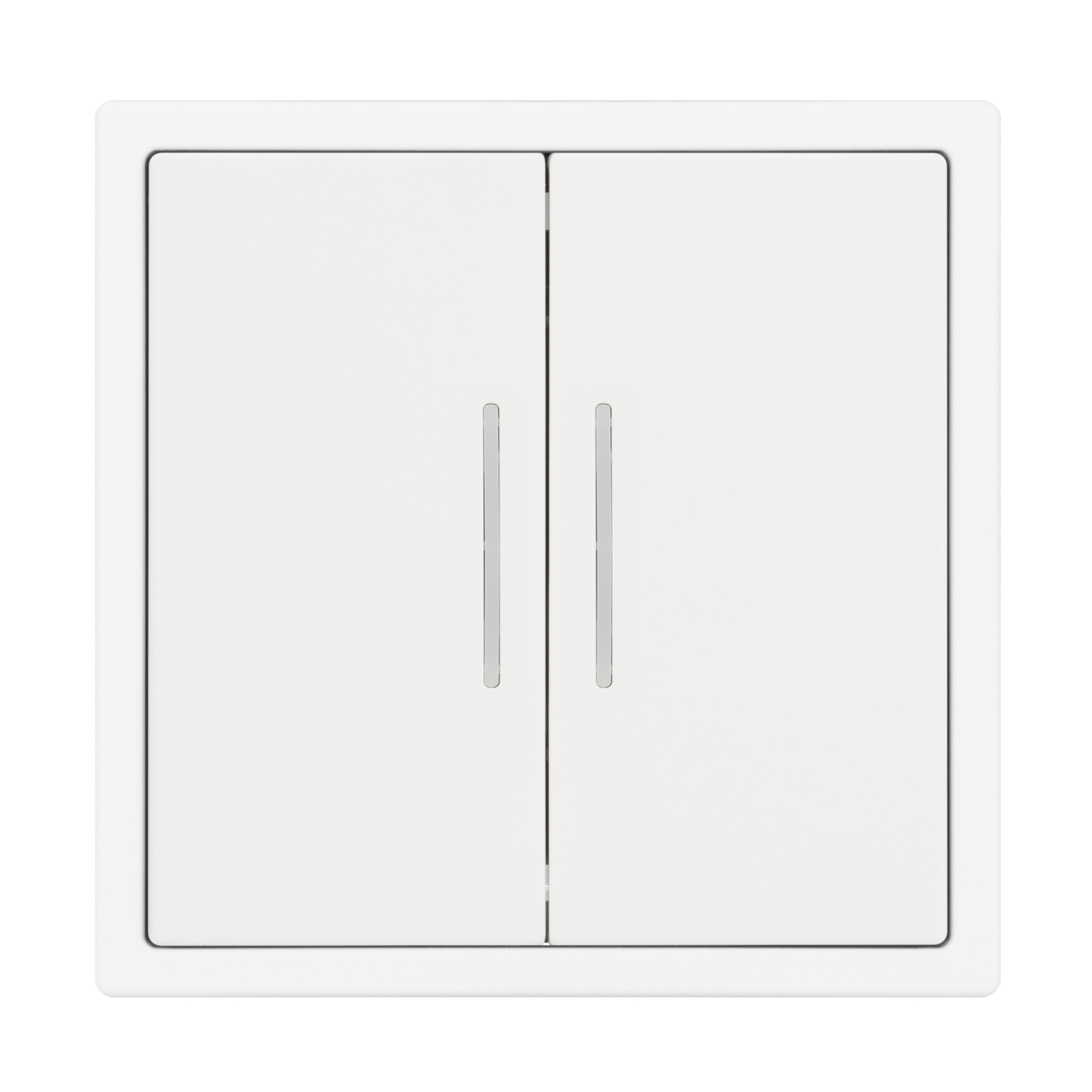 Механизм звонкового выключателя двухклавишный на 1 пост 2 самовозвратные клавиши. Цвет - белый кварц, с Soft-Touch покрытием. Клавиша имеют LED подсветку - cинего свечения. Без фронтальной рамки. Уровень пылевлагозащиты IP20. Выключатель устанавливается в стандартный круглый подрозетник круглого сечения диаметром 60мм.
