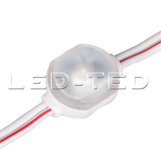 Светодиодный модуль с линзой 160°, 1шт мощный LED smd 2835, корпус ABS+алюминиевая плата, IP67. Цвет ХОЛОДНЫЙ 11000-12000K, световой поток 30 люмен. Питание 12V DC, мощность 0.36 Вт. Габариты 23,1х14х11 мм. Расстояние между центрами модулей 120 мм, Длина провода между модулями 101 мм, 20 шт на проводе. Рекомендуемая глубина короба 40-100мм.